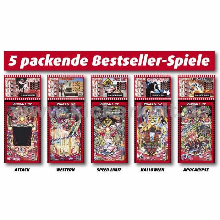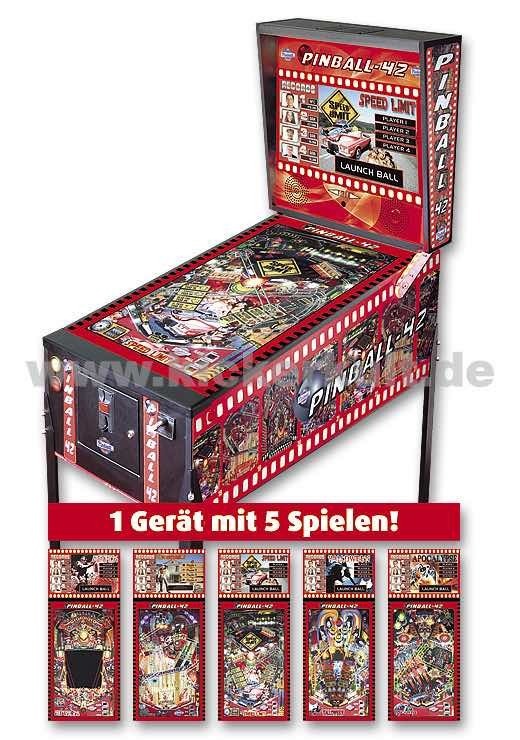 Mit dem Pinball 42 stellt "The Pinball Company" ein völlig neues Flippermodell mit virtuellem Spiel-Design vor. Der Flipper zieht mit 5 Spielen in einem Gerät die Spielgäste sofort und dauerhaft in seinen Bann. Der Tisch ist mit einem 42" Videomonitor mit brilianten Farben und super Soundeffekten versehen. Neben der tollen Bespielbarkeit bietet der Tisch die hohe Qualität eines vollwertigen Flippergehäuses, jedoch ohne Verschleißteile wie Gummiringe, Spulen oder Kontakte. Der Spieler kann zwischen 5 Spielen wählen und mit der integrierten Kamera Fotos für die Highscores aufnehmen.