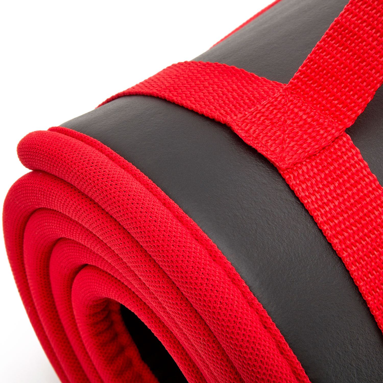 FitnessmatteAusgestattet für KerntrainingMaterial: Nitrilkautschuk (NBR), Nylon und PolyesterGrößen: Länge 183 x Breite 61 x Dicke 1 cmStoffüberzogene KantenRutschfeste Rillen auf der Unterseite der MatteGeschlossene Zelltechnologie minimiert die FeuchtigkeitsaufnahmeLeicht sauber zu haltenZusammenklappbar für einfachen Transport und LagerungEinschließlich Trageriemen mit Klettverschluss