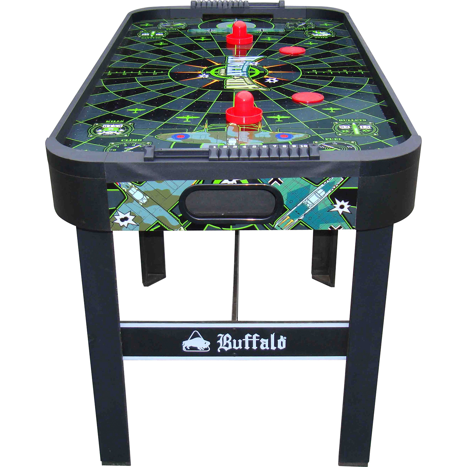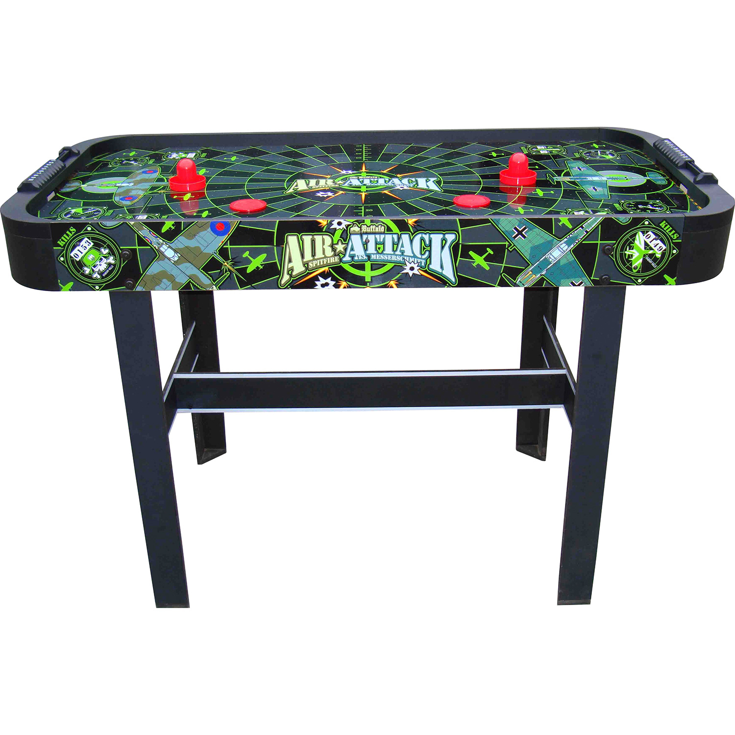 Tolles Design, solide Verarbeitung und das gute Preis-/Leistungsverhältnis zeichnen den Buffalo Airhockeytisch Air Attack in 4 ft. Größe aus. Der kleine aber leistungsstarke Gebläsemotor sorgt für ein flüssiges und schnelles Spielerlebnis. Die manuellen Torzähler sind an den Stirnseiten des Tisches angebracht. Dieser widerstandsfähige und robuste Airhockeytisch ist vor allem für Kinder geeignet.