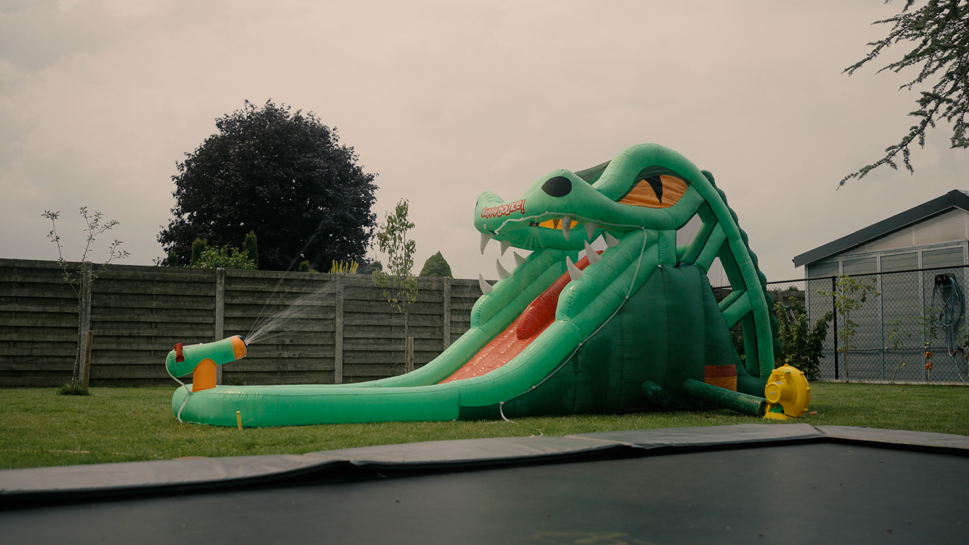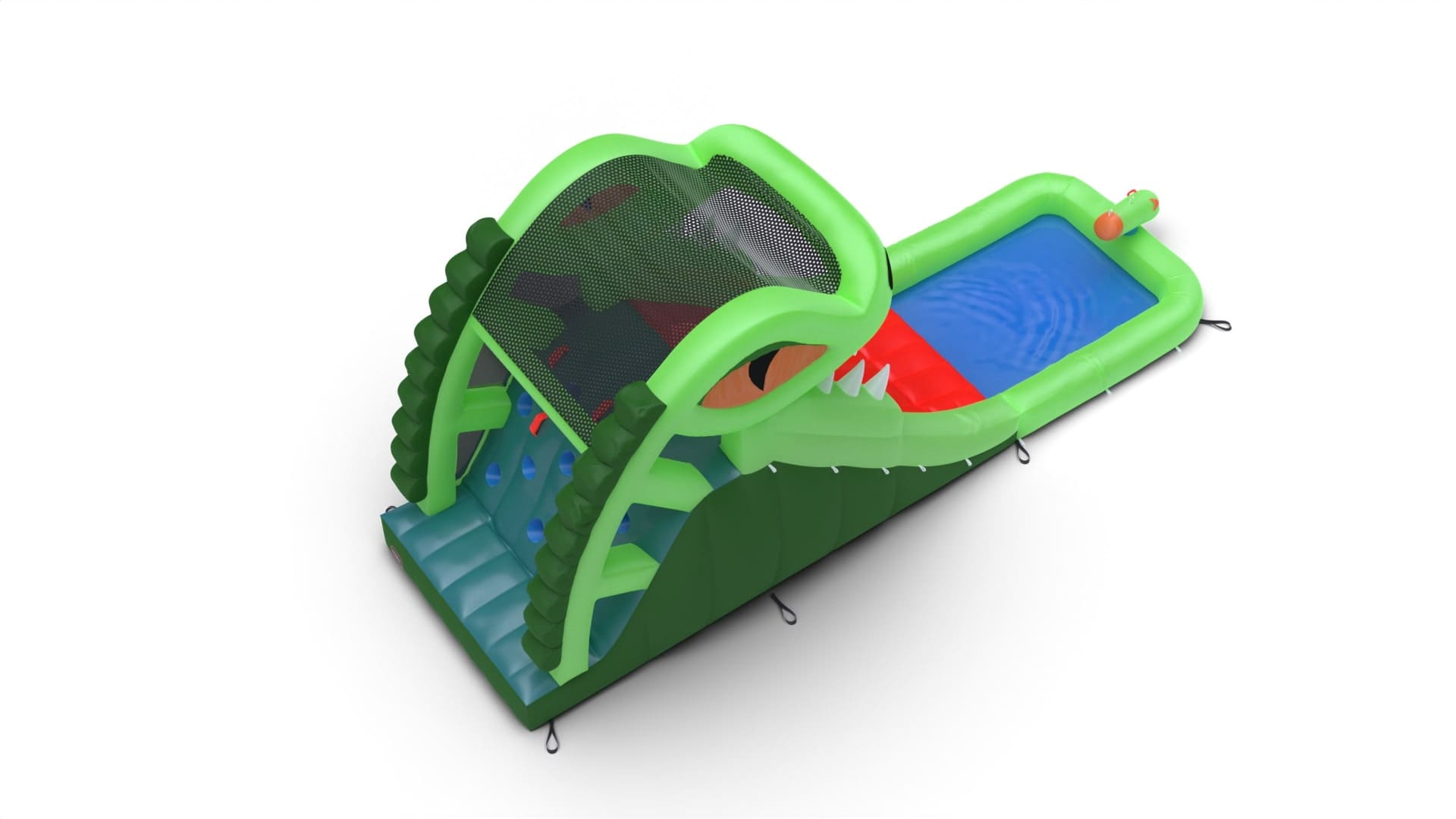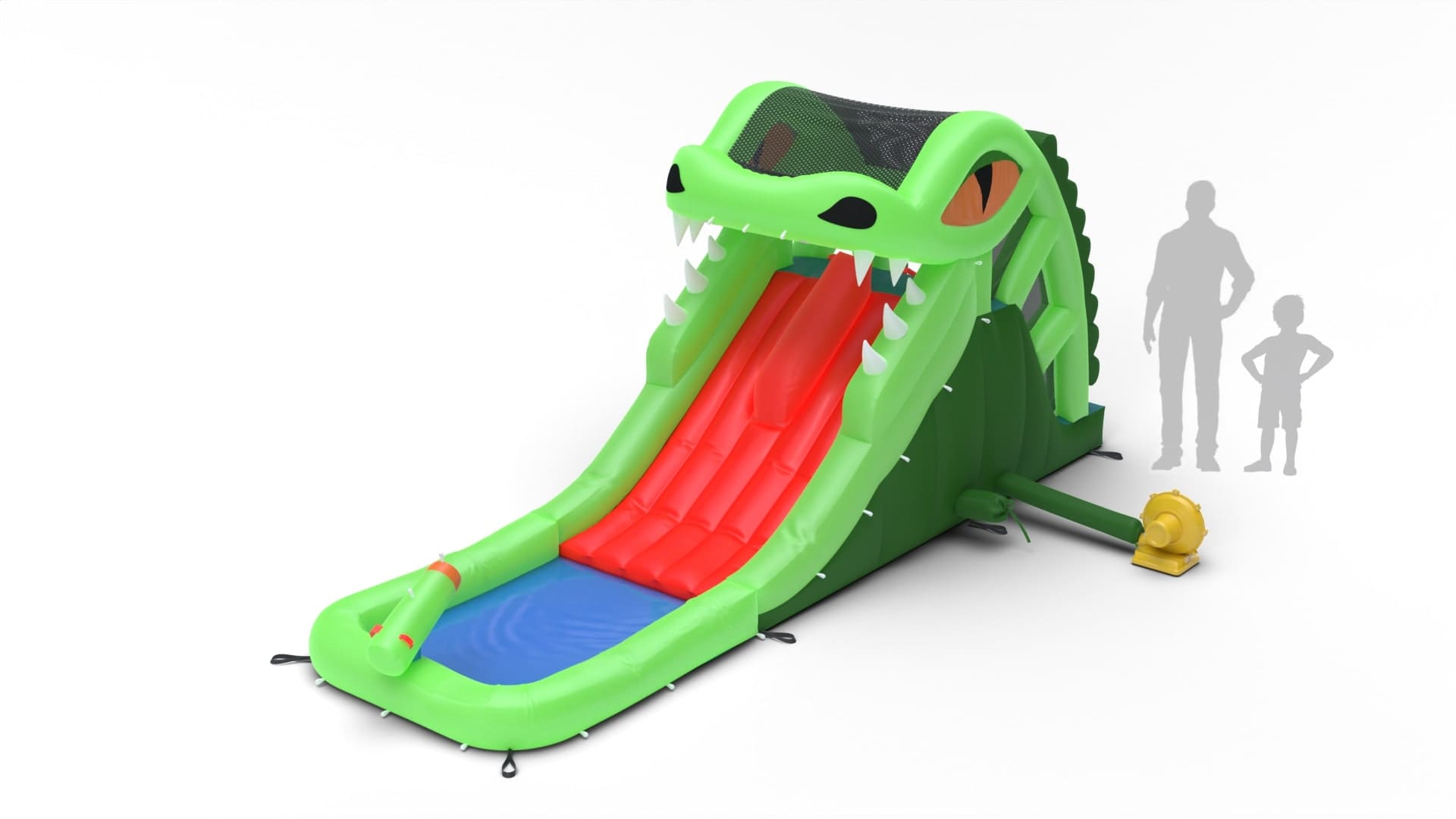 Lustige Krokodil Hüpfburg mit Wasserrutsche - perfekt für den Sommer