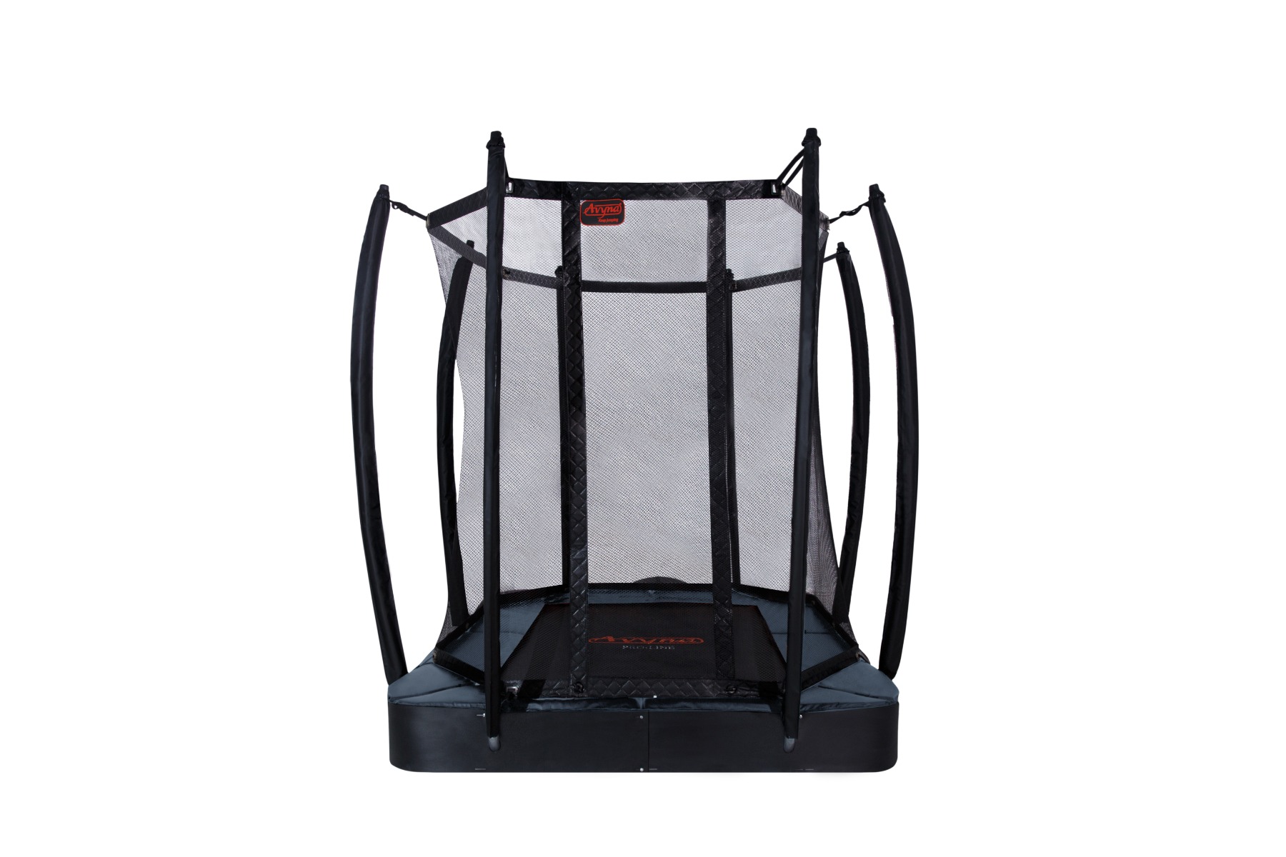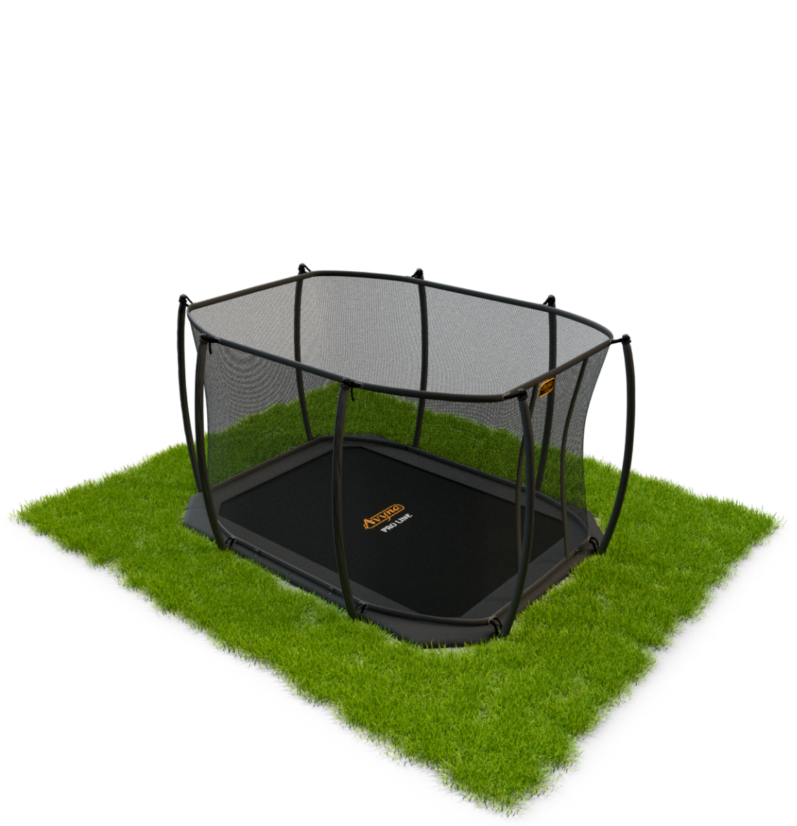 Avyna Pro-Line FlatLevel Trampolin mit Sicherheitsnetz - Kombiset 213 - 275 x 190 cm - Grau Dieses FlatLevel 213 ist das neueste Trampolin in unserem Sortiment. Unser Trampolin 213 mit einer Größe von 2,75 x 1,90 Metern ist seit Jahren ein Hit. Aus diesem Grund führen wir jetzt auch die FlatLevel-Version ein! Durch die kompakte Größe dieses Trampolins, die besten Materialien und das Air X-TREAM Sprungtuch ist dieses neu konzipierte Trampolin perfekt für jeden Garten. FlatLevel bedeutet, dass dieses Trampolin vollständig in den Boden eingegraben ist. Also kein Schritt. Dieses FlatLevel 213 Trampolin 275 x 190 cm ist mit einem Royal Class Sicherheitsnetz, einem soliden grauen Trampolinrand, doppelt verzinkten Federn und unserer neuesten Air X-TREAM Sprungmatte ausgestattet. Durch die offene Webstruktur hat diese Air X-TREAM Matte eine bis zu 70% bessere Luftdurchlässigkeit als normale Sprungmatten. Dadurch kann sich die Matte beim Sprung leicht bewegen und Sie können höher springen. Die Sprungmatte ist 100% UV-beständig. Außerdem hat dieses Sprungtuch eine zusätzliche Klappe von 10 cm, um die Federn abzudecken, denn Sicherheit geht vor. Der Rand des Trampolins deckt auch die Federn ab und bleibt bei jedem Sprung sauber an seinem Platz. Das hochwertige und langlebige Material dieses Trampolins garantiert Ihnen jahrelangen Springspaß! Die Verwendung eines Sicherheitsnetzes um dieses Flat Level Trampolin ist nicht zwingend erforderlich, solange um das Trampolin herum ein weicher Boden von mindestens 1 Meter vorhanden ist. Sind Sie auf der Suche nach diesem Modell ohne Sicherheitsnetz? FlatLevel-Trampoline (komplett ebenerdig) und InGround (20 cm über dem Boden) werden immer beliebter. Der Rahmen dieser Trampoline ist in den Boden eingelassen. Das sorgt für ein dichtes Erscheinungsbild, denn das Trampolin wird mit dem Garten eins. Außerdem sind diese Trampoline durch die niedrige Ein- und Ausstiegshöhe sehr sicher. Bevorzugen Sie ein Trampolin auf Beinen? Alle unsere Avyna Pro-Line Trampoline werden in unserer eigenen Fabrik in Vietnam entwickelt und hergestellt. Mit einem Avyna Pro-Line Trampolin erhalten Sie Qualität, Sicherheit und Langlebigkeit im Haus. Dank der schweren Qualitätsmaterialien haben unsere Trampoline eine extrem lange Lebensdauer. Darauf sind wir natürlich stolz. Aus diesem Grund bieten wir im Gegensatz zu anderen Trampolinmarken eine lebenslange Garantie auf den Rahmen des Trampolins. Außerdem sind unsere Trampoline hervorragend verarbeitet und wir achten sehr auf die kleinen Details, wie zum Beispiel die Nähte. All dies zusammen sorgt dafür, dass die Avyna Pro-Line Trampoline zum oberen Segment gehören. Selbstverständlich entspricht unser Angebot an Trampolinen den neuesten Sicherheitsanforderungen. Alle unsere Trampoline haben ein CE-Zeichen, sind EN 7114 geprüft und haben eine EN 1176-Zertifizierung.inground trampolineMöchten Sie Ihr Trampolin eingraben? Wir arbeiten mit verschiedenen Gärtnern und Händlern zusammen, die das gerne für Sie tun. Klicken Sie hier, um Gärtner und Händler zu finden die Ihnen bei der Aufstellung Ihres InGround-Trampolins helfen können.