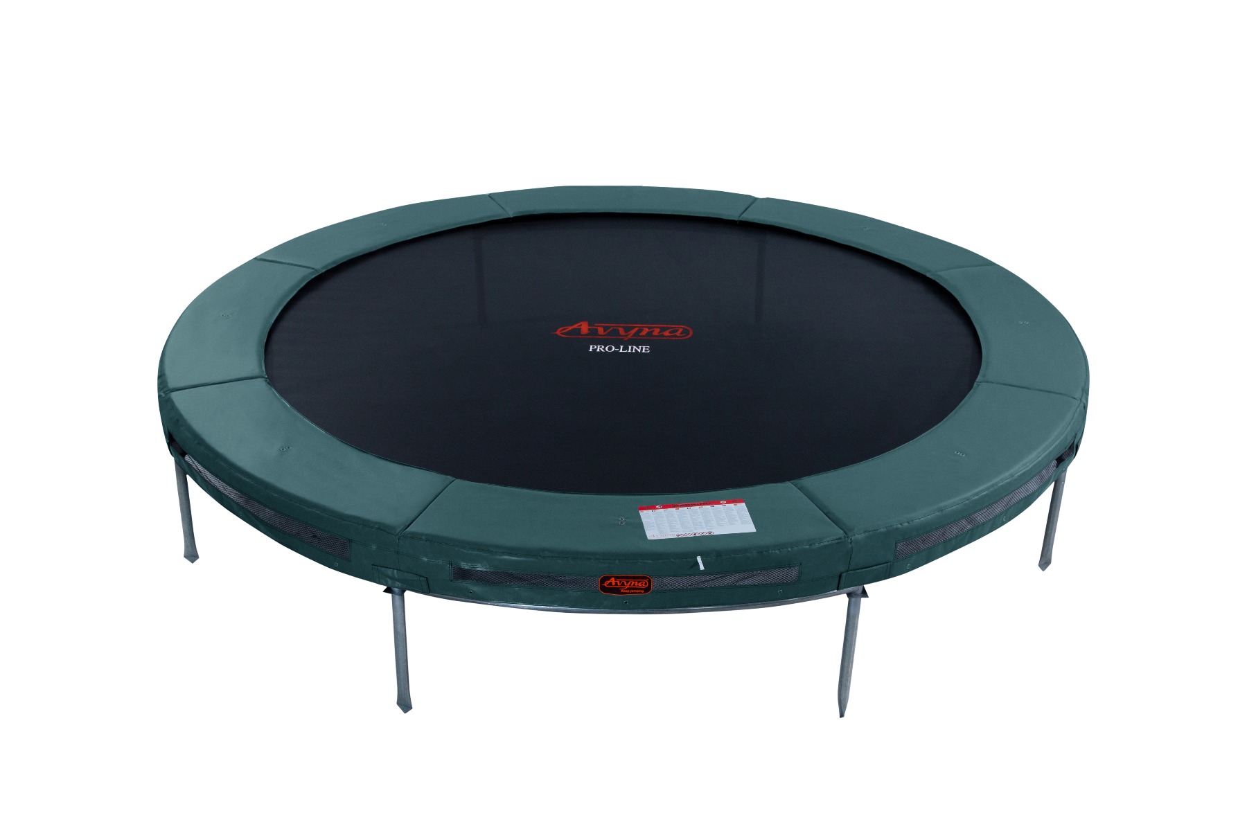 Die runden Bodentrampoline der Pro Line von Avyna eignen sich aufgrund ihrer wetterfesten Materialien perfekt für eine ganzjährige Outdoornutzung in Ihrem Garten. Die beständige Sprungmatte, die Sicherheitsumrandung sowie die belastbaren, doppelt-galvanisierten, Sprungfedern bieten hohe Qualität und lange Haltbarkeit. Das robuste Trampolin ist dabei über ein Bodenankersystem mit dem Untergrund verbunden. Die runden Pro Line Bodentrampoline sind außerdem in unterschiedlichen Farben und Größen verfügbar.