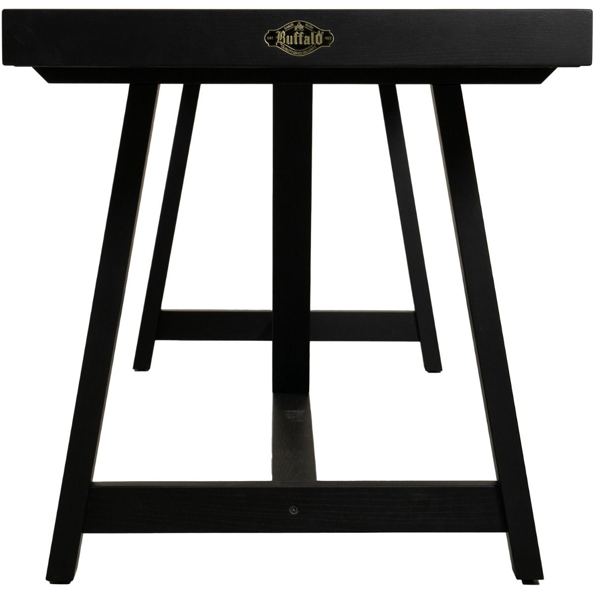 Dieses Buffalo Shuffleboard aus massivem Eschenholz mag für ein amerikanisches Shuffleboard relativ kompakt sein, aber seine Größe tut der Spielfreude keinen Abbruch. Das Buffalo Shuffleboard 9ft ist leicht zu handhaben und kann mühelos verschoben werden. Die Beine des Shuffleboards sind mit Nivellierfüßen ausgestattet, sodass Sie es immer perfekt waagerecht aufstellen können. Sowohl der Rahmen als auch die Tischbeine dieses Shuffleboards sind aus schwarz lackiertem und geöltem Eschenholz gefertigt, wobei die Rinne ebenfalls schwarz lackiert ist. Die Linien und Zahlen des Spielfelds sind lasergraviert. Das Buffalo Shuffleboard lässt sich leicht zusammenbauen, die Beine anbringen, und schon kann es losgehen!