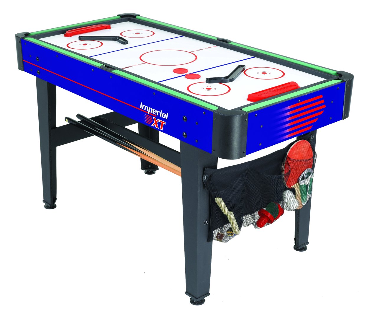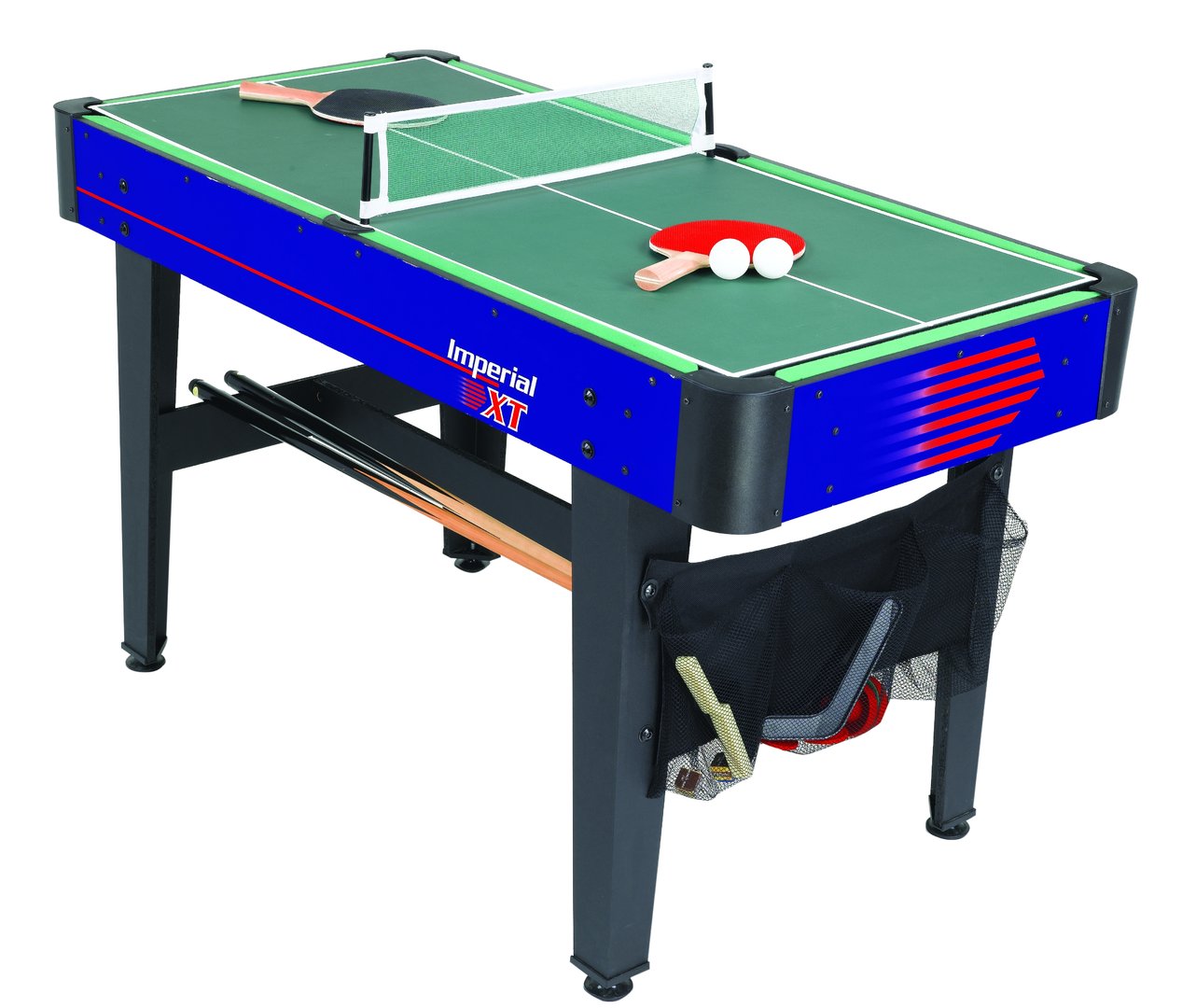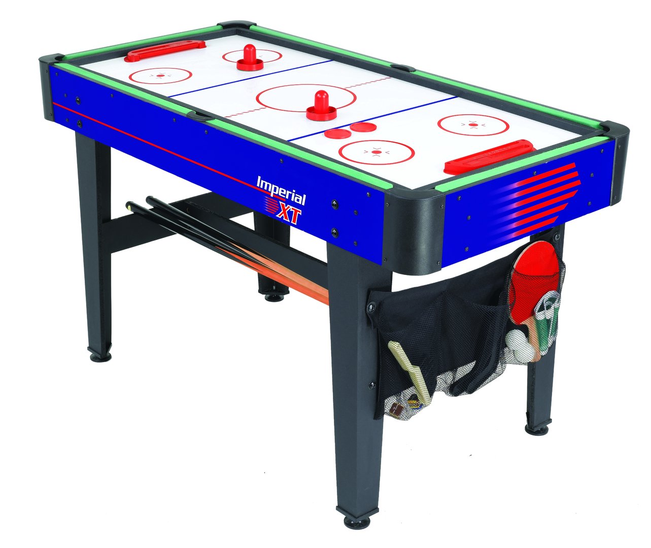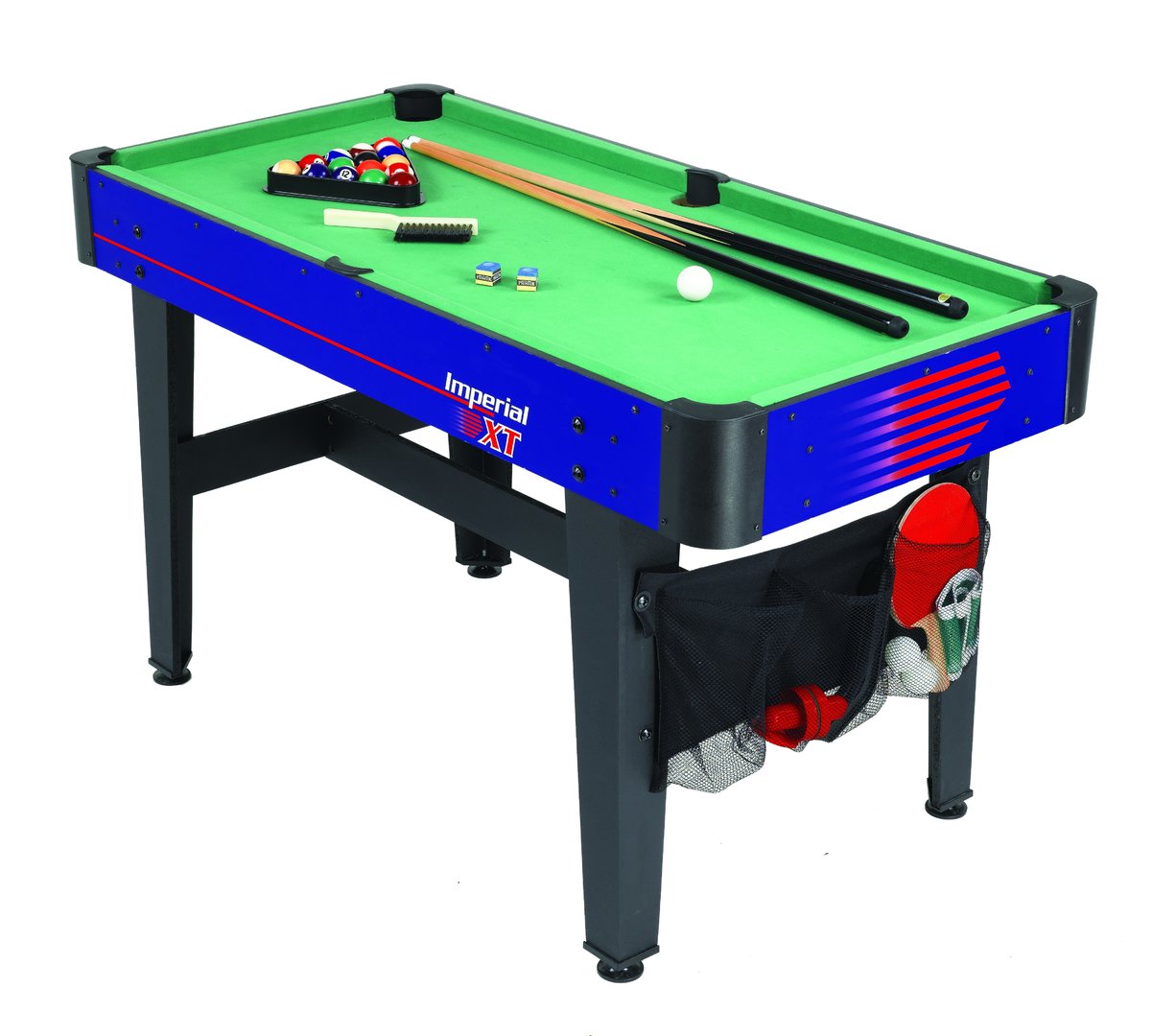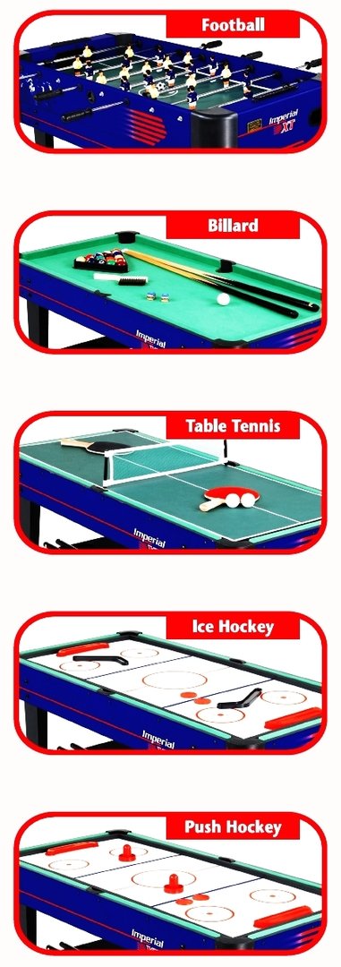 Dieser attraktive Multifunktionstisch Imperial XT von Carromco ist ein 7 in 1 Multitalent für jedes Kinderzimmer oder den Hobbybereich. Der Multitisch ist einfach und schnell umzubauen und ist Billard, Tischfußball, Tischtennis, Gleithockey, Eishockey, Black Jack Unterlage und Craps Würfeltisch in Einem. Ein umfangreiches Zubehörset, welches im Lieferumfang enthalten ist, macht den Tisch sofort einsatzbereit und bietet Spaß für die ganze Familie.