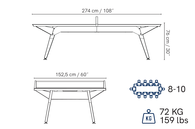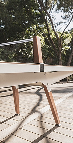 Die Tischplatte besteht aus Massivlaminat mit einem Metallgestell aus pulverbeschichtetem Stahl. Die Edelstahlschrauben geben der Outdoorplatte seine Langlebigkeit und Widerstandsfähigkeit, sodass er auch widrigsten Wetterbedingungen standhält. Zudem unterscheidet die Tischtennisplatte sich durch Ihre Bauweise und der Oberflächenbeschichtung aus Mattop von herkömmlichen Tischen.