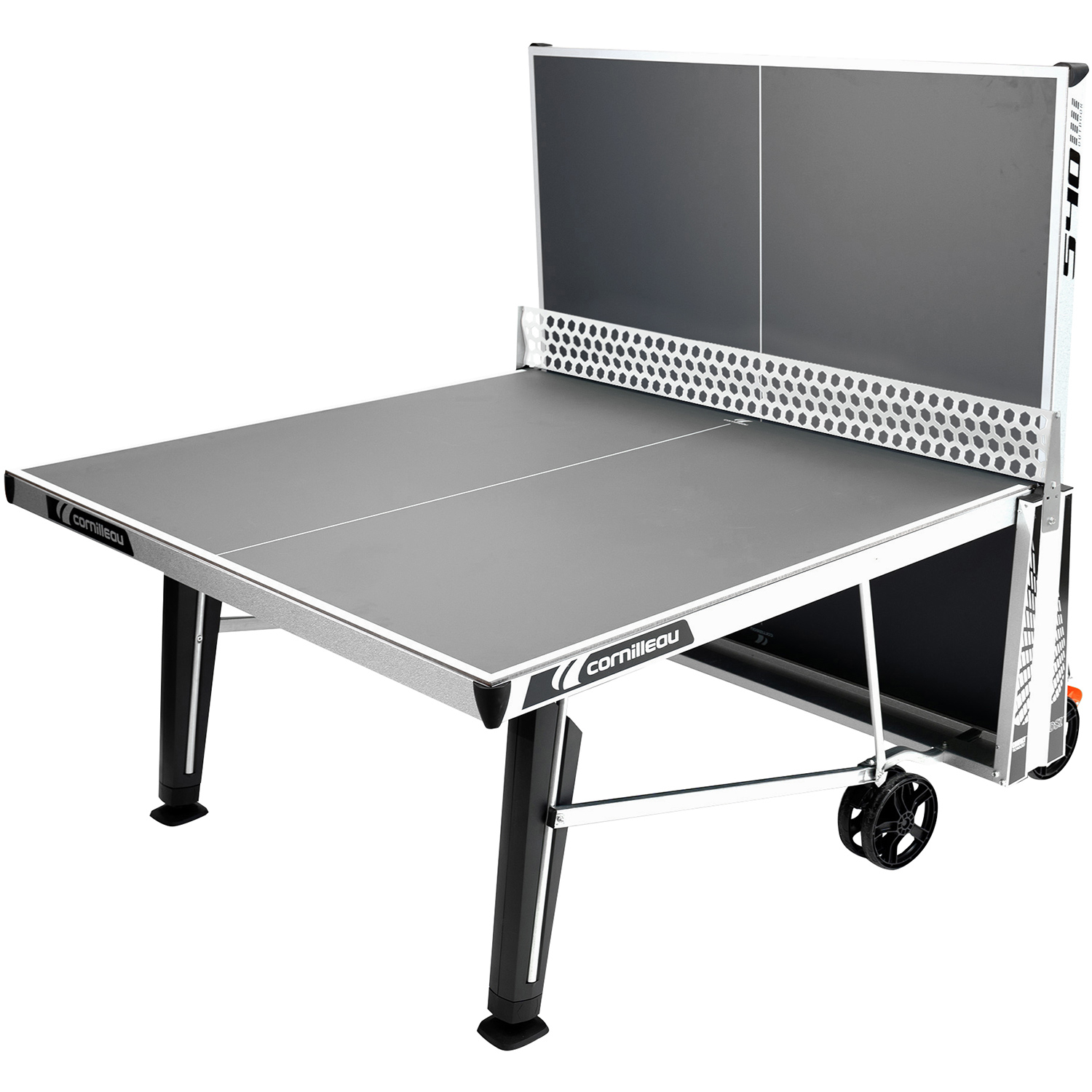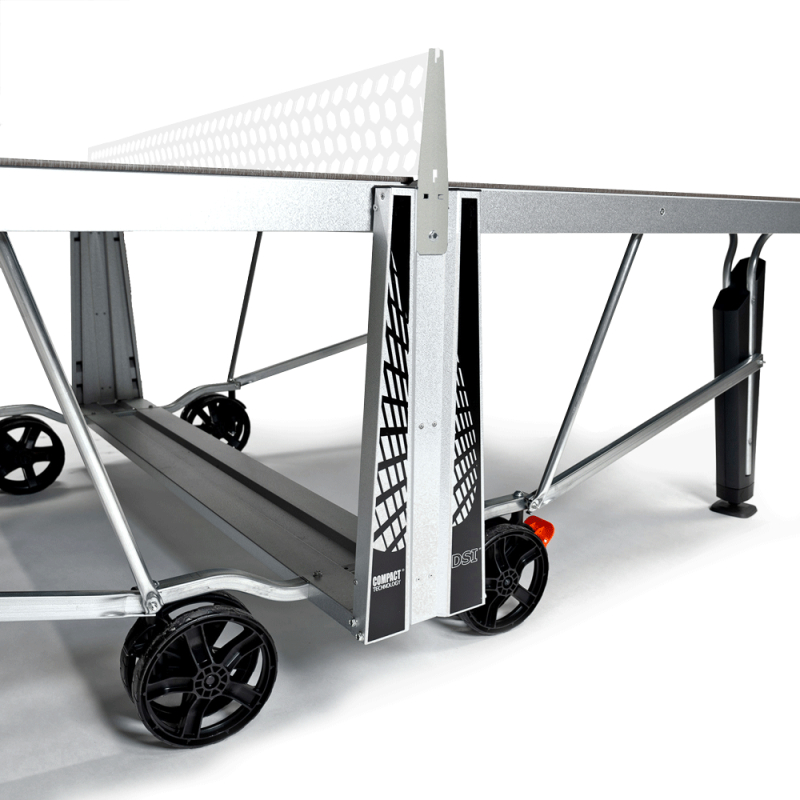 Der Cornilleau Tischtennistisch Pro 540 outdoor: robust und mit entspiegelter Spielfläche. Der Cornilleau Tischtennistisch Pro 540 outdoor überzeugt durch seine strapazierfähige Konstruktion und ernome Stabilität. Die Tischtennisplatte hat einen 60 mm starken Rahmen und massive Beine. Dank der speziellen 7 mm starken Melaminharzplatte mit Mattop-Beschichtung ist die Cornilleau Tischtennisplatte Pro 540 outdoor blendfrei: Fröhlichen Matches im Garten steht somit nichts mehr im Wege. Der Cornilleau Tischtennistisch Pro 540 outdoor ist klappbar und somit leicht platzsparend zu verstauen und Sie können mit nur einer zusammengeklappten Hälfte alleine trainieren. Das DSI-System von Cornilleau sorgt dafür, dass das Zusammenklappen einfach und vor allem sicher ist. Kombinieren Sie diesen Tisch mit dem Cornilleau Standard Net Kit. Damit können Sie das Stahlnetz durch ein Standardnetz ersetzen, das in Höhe und Spannung verstellbar ist.