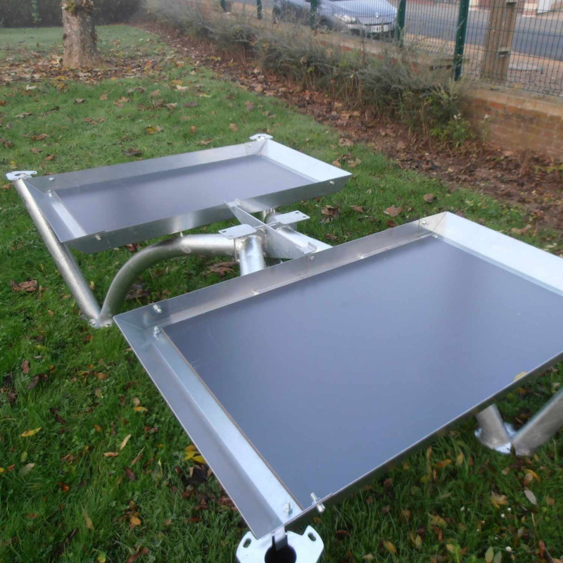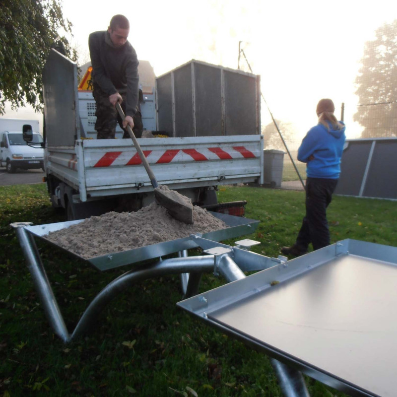 Der Ballast Tank dient zum Beschweren der Pro Park Tischtennisplatte von Cornilleau. Durch das erhöhte Gewicht kann auf eine Verankerung am Boden verzichtet werden. Die Schalen werden idealerweise mit Sand befüllt, alternativ können eventuell auch andere Füllstoffe verwendet werden. Die Konstruktion wiegt 20 kg und kann mit 44 kg Sand befüllt werden, somit ergibt sich ein Zusatzgewicht von 64 kg.
