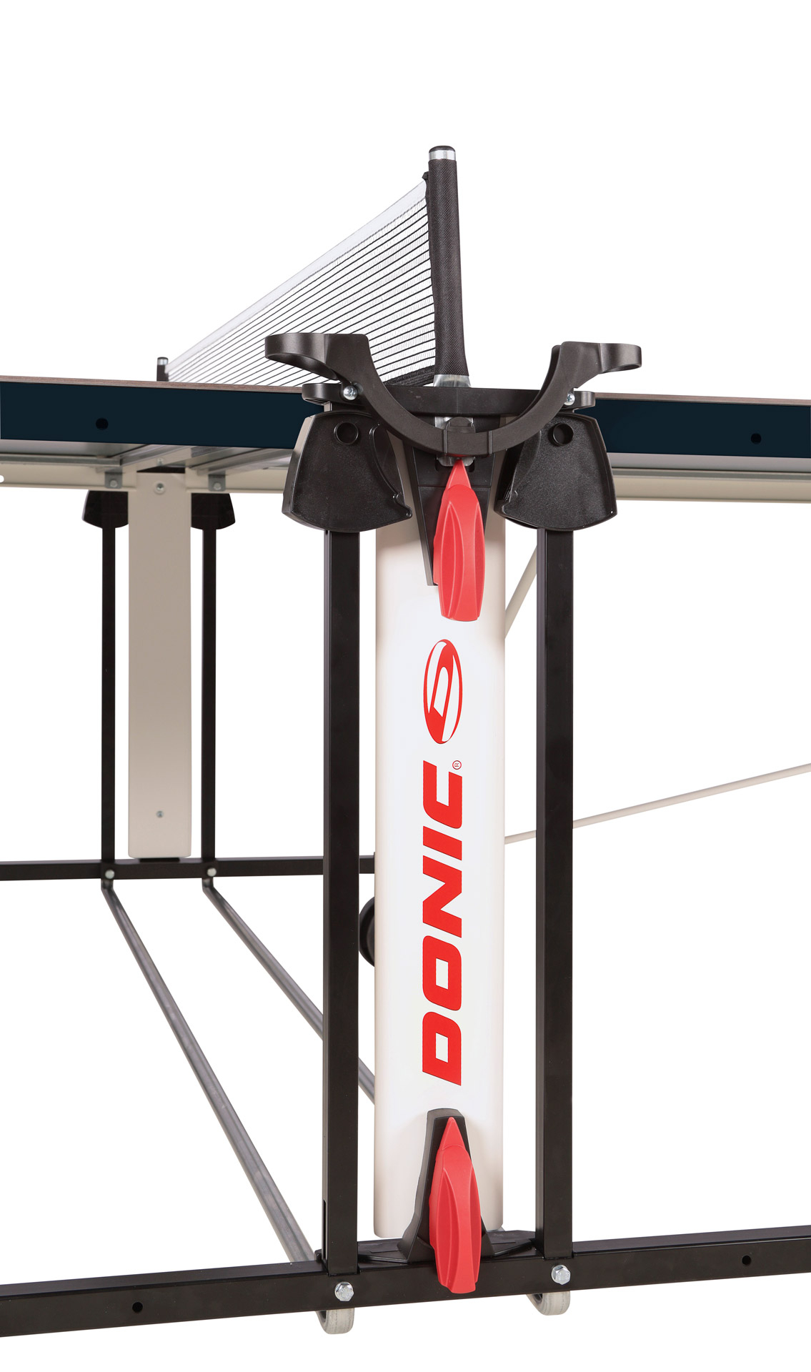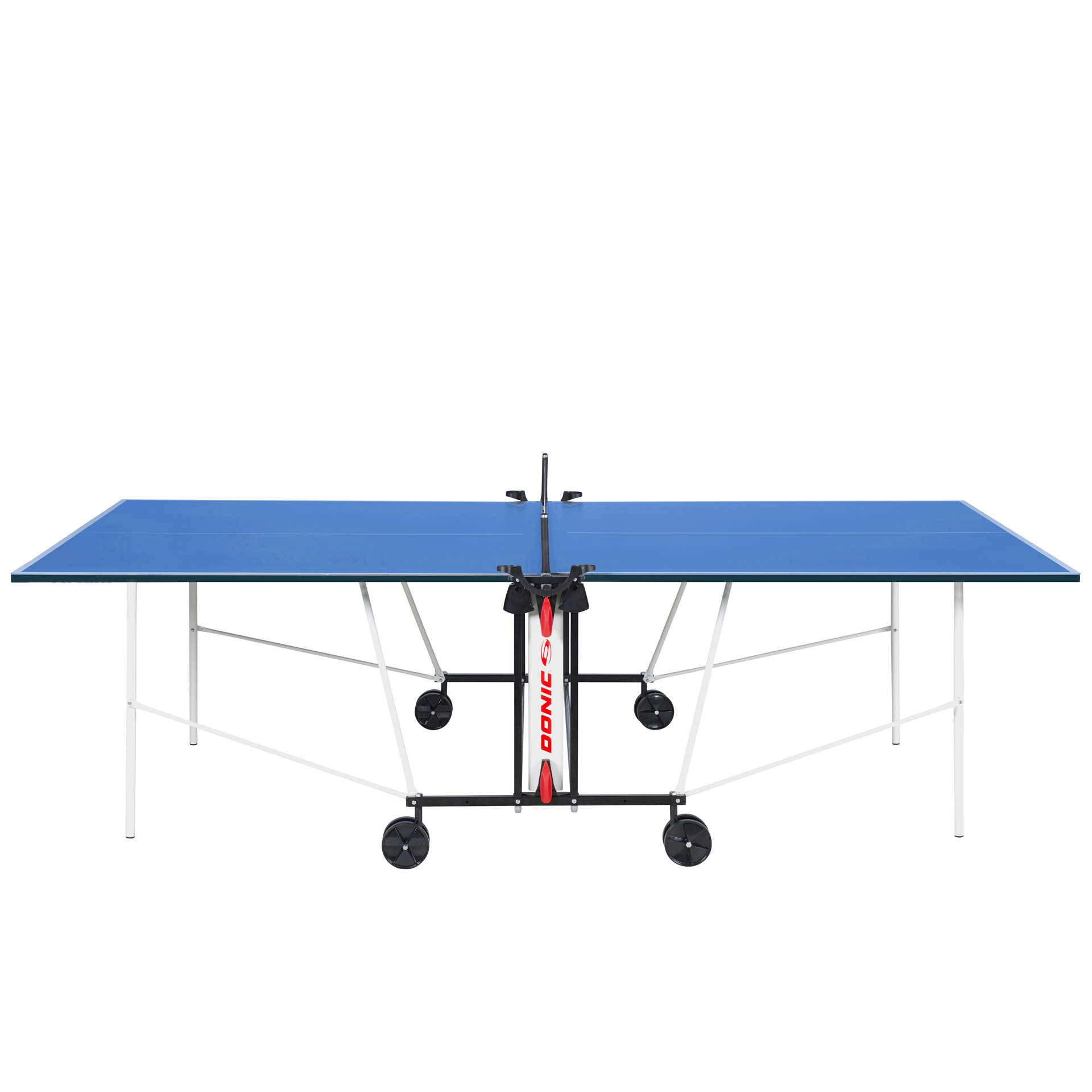 Und sollte mal kein passender Trainingspartner zur Verfügung stehen, dann schafft der Single Player Modus, anhand dessen die Oberflächen separat voneinander hochgeklappt werden, umgehend Abhilfe. Auch in Sachen Design lässt die TT-Platte keine Wünsche offen. Die blaue Oberfläche und das weiße Rahmenprofil mit roten Akzenten ist ein Hingucker unter den Indoor-Tischtennisplatten.