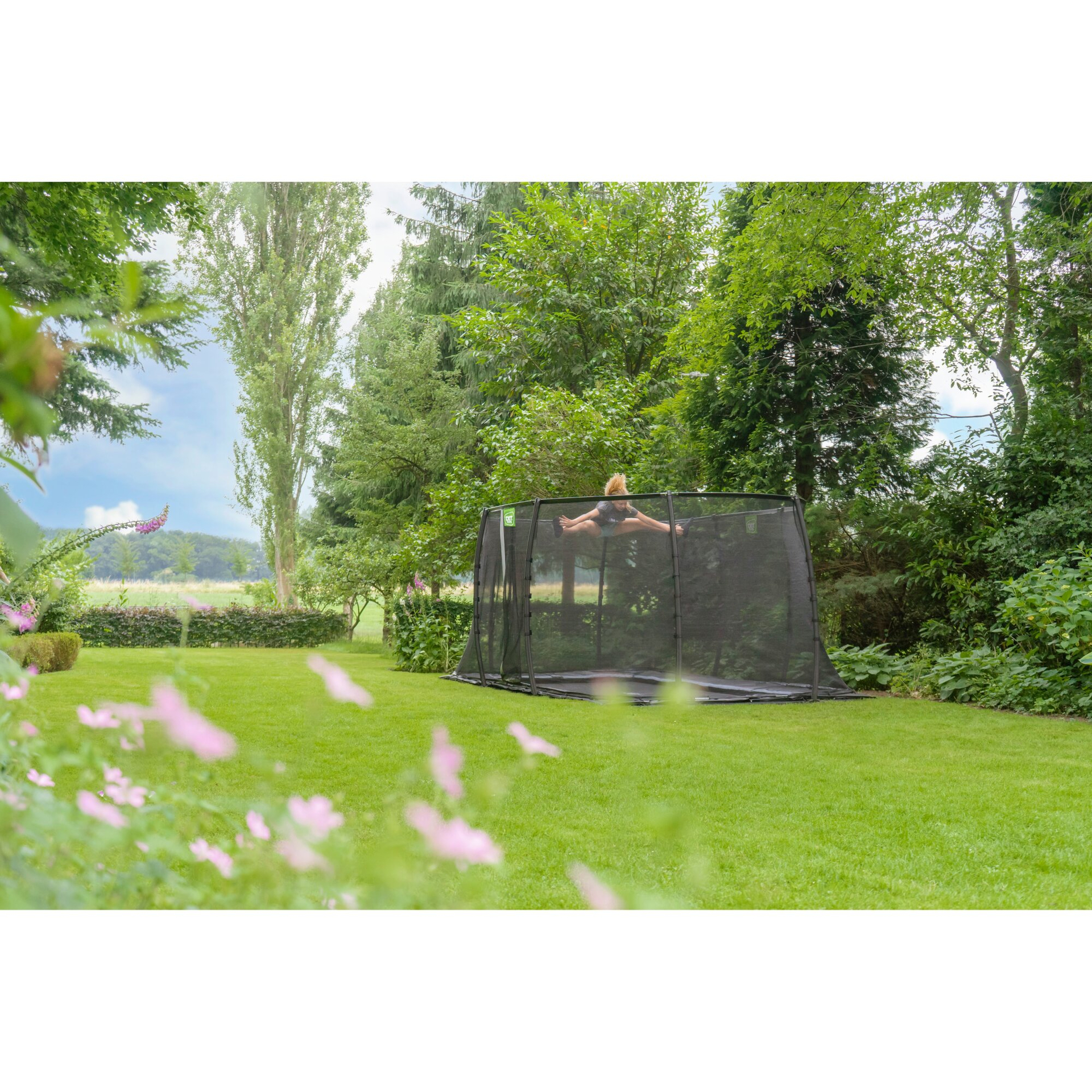 EXIT Dynamic ebenerdiges Trampolin 244x427cm mit Sicherheitsnetz - schwarz