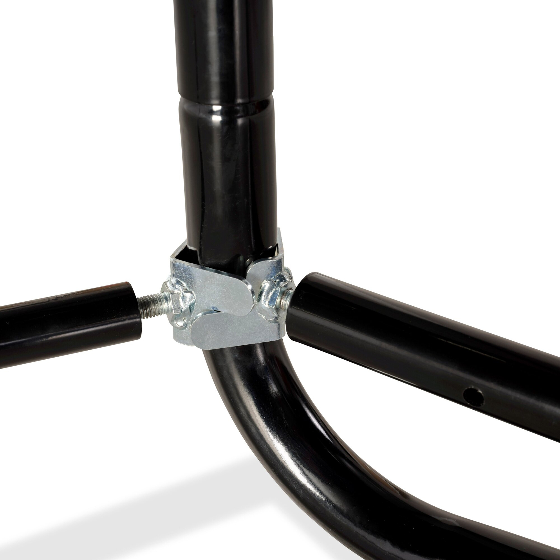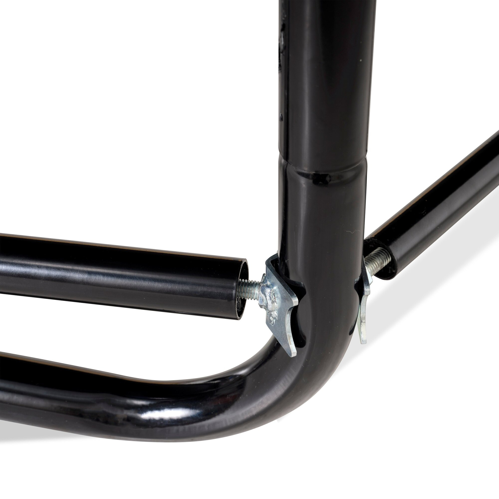 Der EXIT Mähroboter-Stopper L ist eine Blockade, die am Trampolin befestigt wird, damit der Mähroboter den Rasen rund um das Trampolin und darunter gut mähen kann, ohne dabei das Trampolin zu berühren. Der Stopper ist ein Metallrohr mit Gewinde, das zwischen den Trampolinfüßen festgeklemmt wird. Dank dem Gewinde ist das Rohr höhenverstellbar. Daher sitzt es immer stabil zwischen den Füßen. Mit dem EXIT Mähroboter-Stopper L bestimmst du selbst, ob du das ganze Trampolin oder nur die Füße blockieren willst. Werden nur die Füße blockiert, erreicht der Mähroboter gut den Rasen unter dem Trampolin. Möchten die Kinder gerade dann auf dem Trampolin springen, wenn der Mähroboter in Betrieb ist? Entscheide dich dann, das ganze Trampolin zu blockieren. Der Stopper wird in einem Zweierset verkauft. Er ist für EXIT Trampoline und auch andere Trampoline mit W-Füßen geeignet, wo der Abstand zwischen die Füsse 100-180 Zentimeter beträgt. Die Maße des Trampolins bestimmen, wie viele Sets du brauchst, um die Füße oder das ganze Trampolin zu blockieren:
