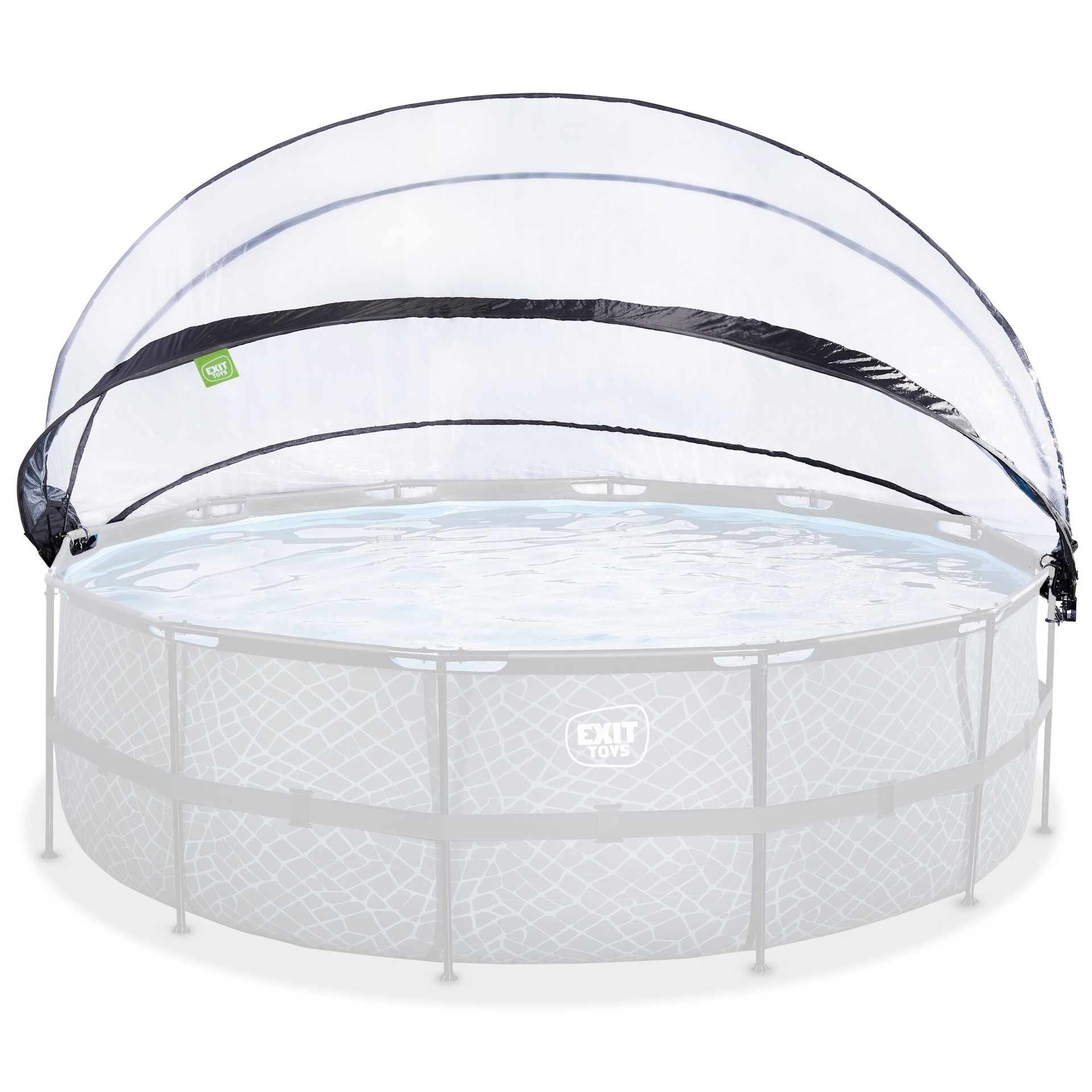 Das Exit Pool Sonnendach schützt Ihren Pool vor Schmutz von außen und allen Witterungseinflüssen. Die durchsichtige Plane aus langlebigem PVC bzw. Kunststoff wärmt durch die Sonneneinstrahlung zusätzlich das Wasser auf, sodass Sie jederzeit auch bei Regen oder Wind den Pool nutzen können. Das Sonnendach passt perfekt auf die rechteckigen und runden Pools von Exit. Das rechteckige Pooldach kann zudem mit einem Reißverschluss vorn geöffnet werden. Ebenso kann das Dach auch nur teilweise geöffnet werden, sodass Wind abgehalten wird und der Pool trotzdem gut nutzbar ist. Der Schmutz wird durch das Dach vom Wasser abgehalten, sodass Sie keine zusätzliche Abdeckplane benötigen und führt so zur Steigerung der Lebensdauer des Pools sowie der Wasserqualität.