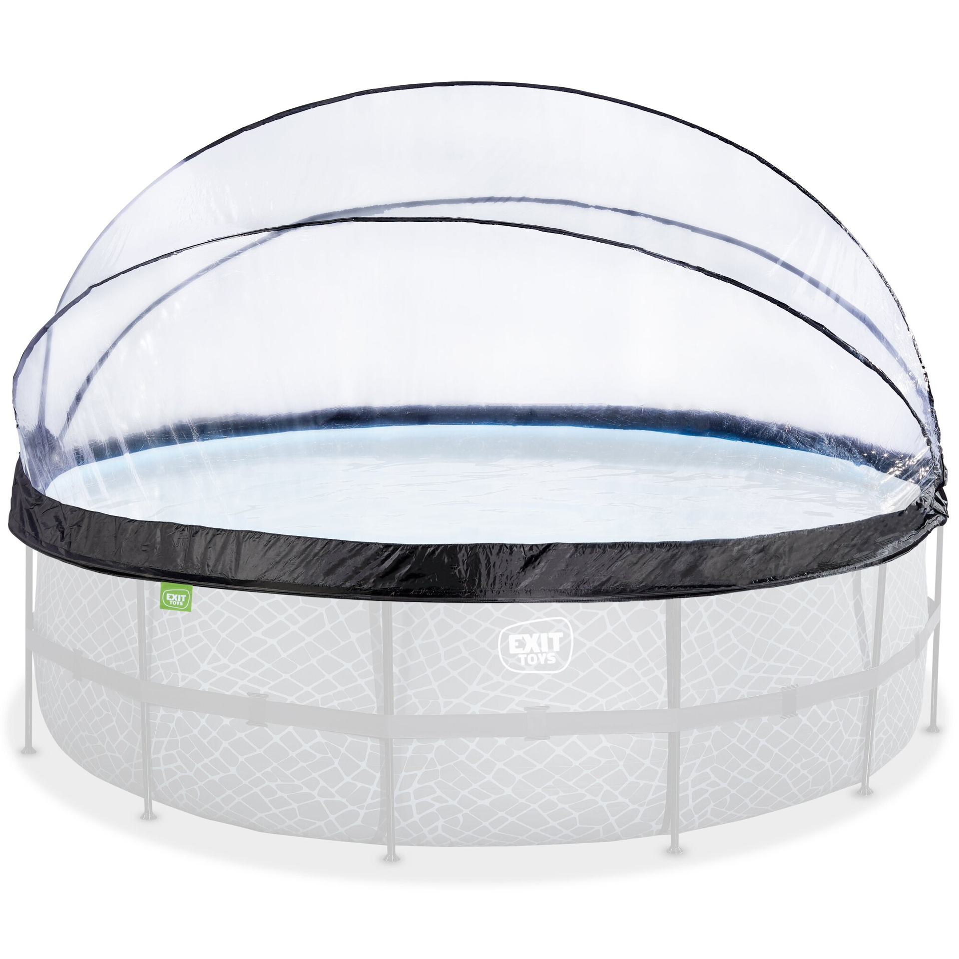 Das Exit Pool Sonnendach schützt Ihren Pool vor Schmutz von außen und allen Witterungseinflüssen. Die durchsichtige Plane aus langlebigem PVC bzw. Kunststoff wärmt durch die Sonneneinstrahlung zusätzlich das Wasser auf, sodass Sie jederzeit auch bei Regen oder Wind den Pool nutzen können. Das Sonnendach passt perfekt auf die rechteckigen und runden Pools von Exit. Das rechteckige Pooldach kann zudem mit einem Reißverschluss vorn geöffnet werden. Ebenso kann das Dach auch nur teilweise geöffnet werden, sodass Wind abgehalten wird und der Pool trotzdem gut nutzbar ist. Der Schmutz wird durch das Dach vom Wasser abgehalten, sodass Sie keine zusätzliche Abdeckplane benötigen und führt so zur Steigerung der Lebensdauer des Pools sowie der Wasserqualität.