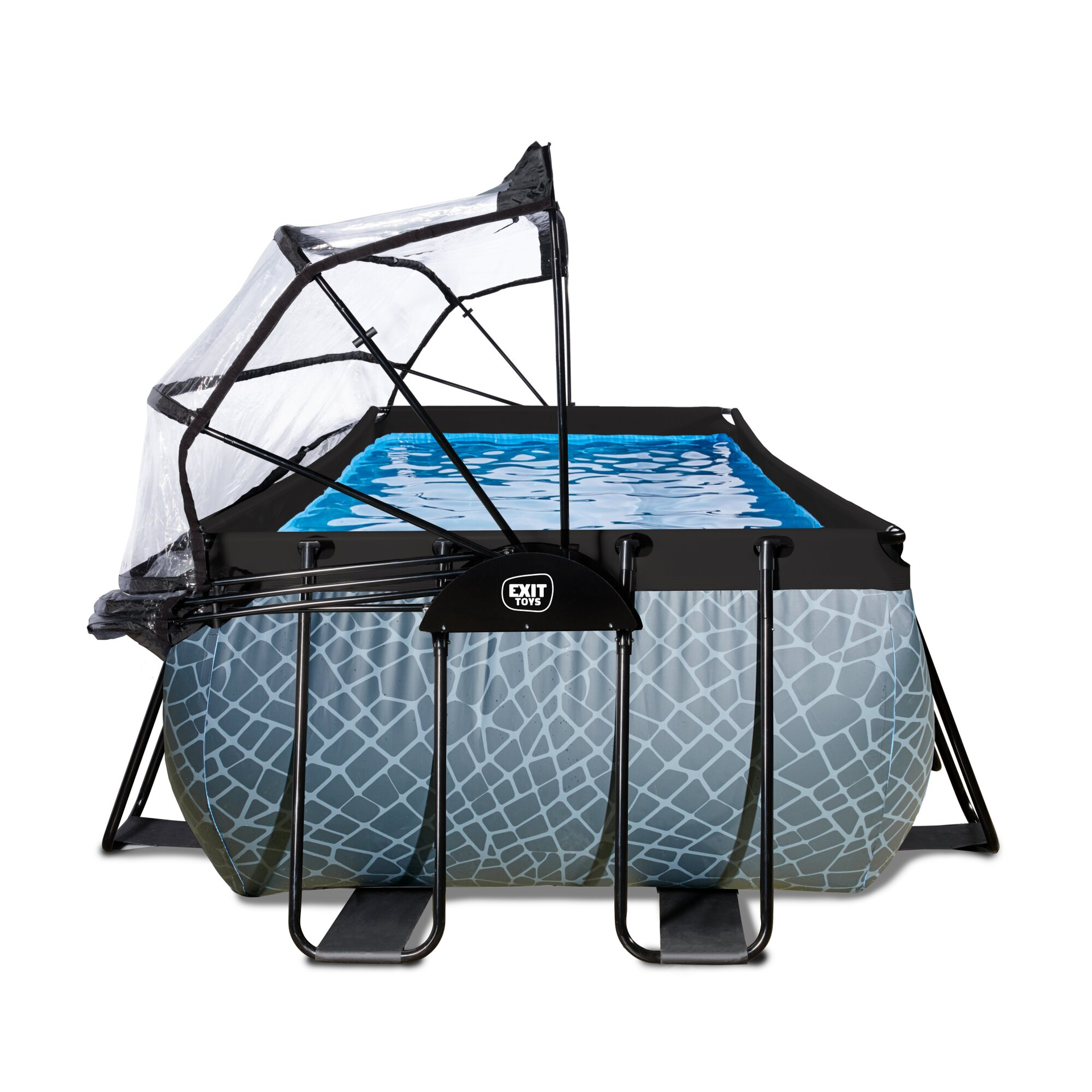 EXIT Stone Pool 400x200x100cm mit Sandfilterpumpe und Abdeckung und Wärmepumpe - grau