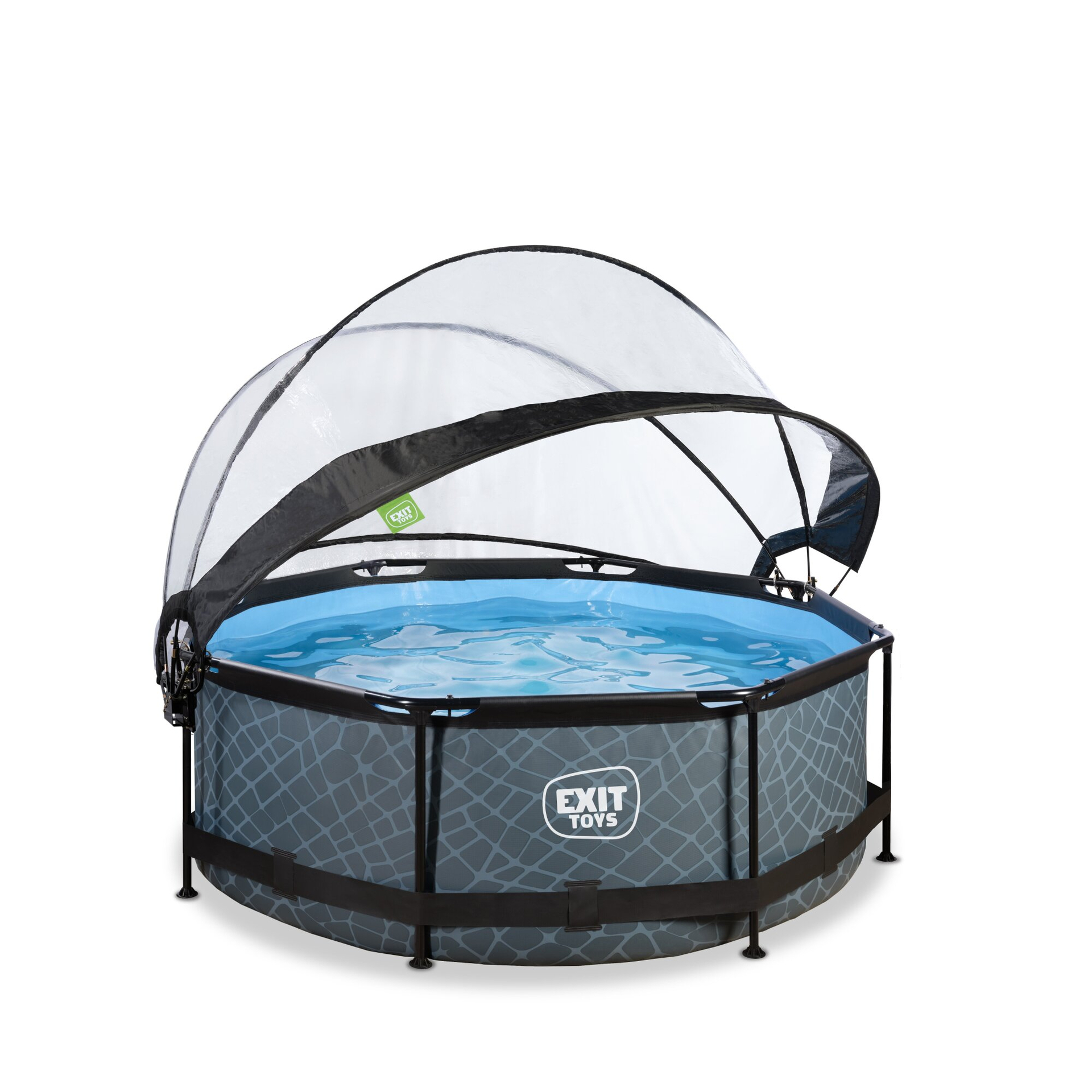 EXIT Stone Pool ø244x76cm mit Filterpumpe und Abdeckung - grau