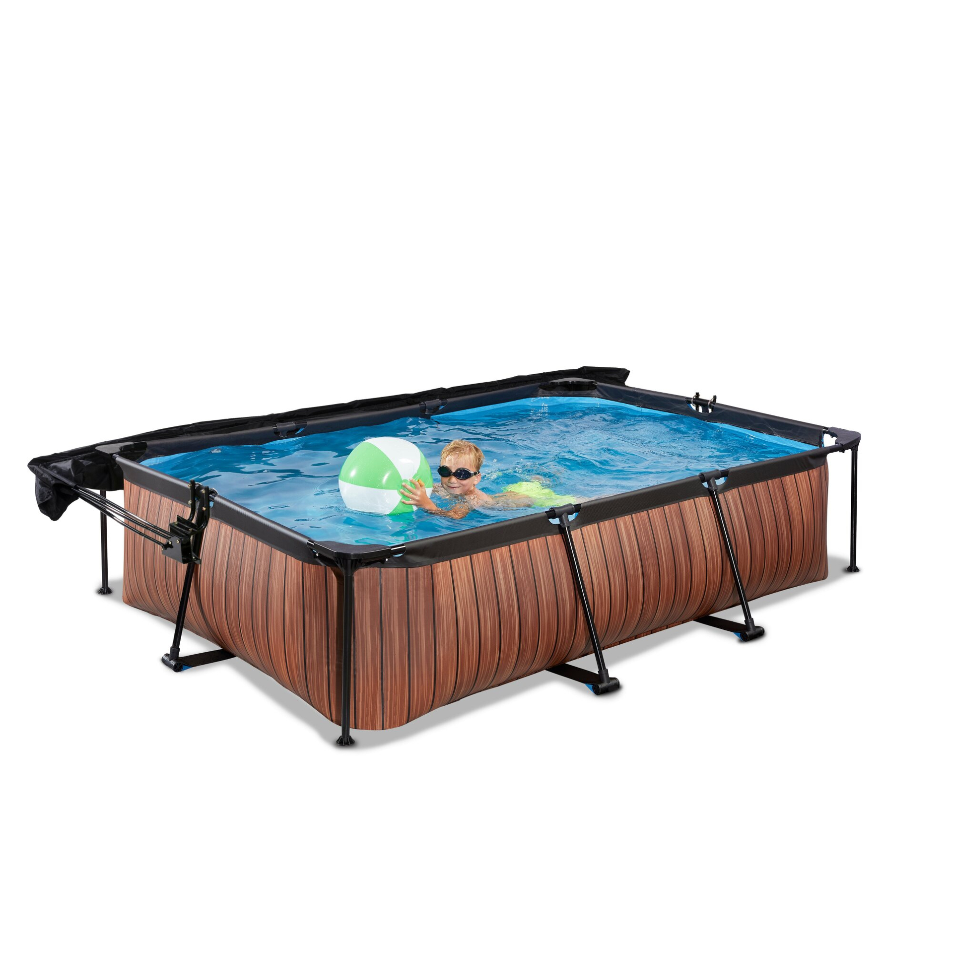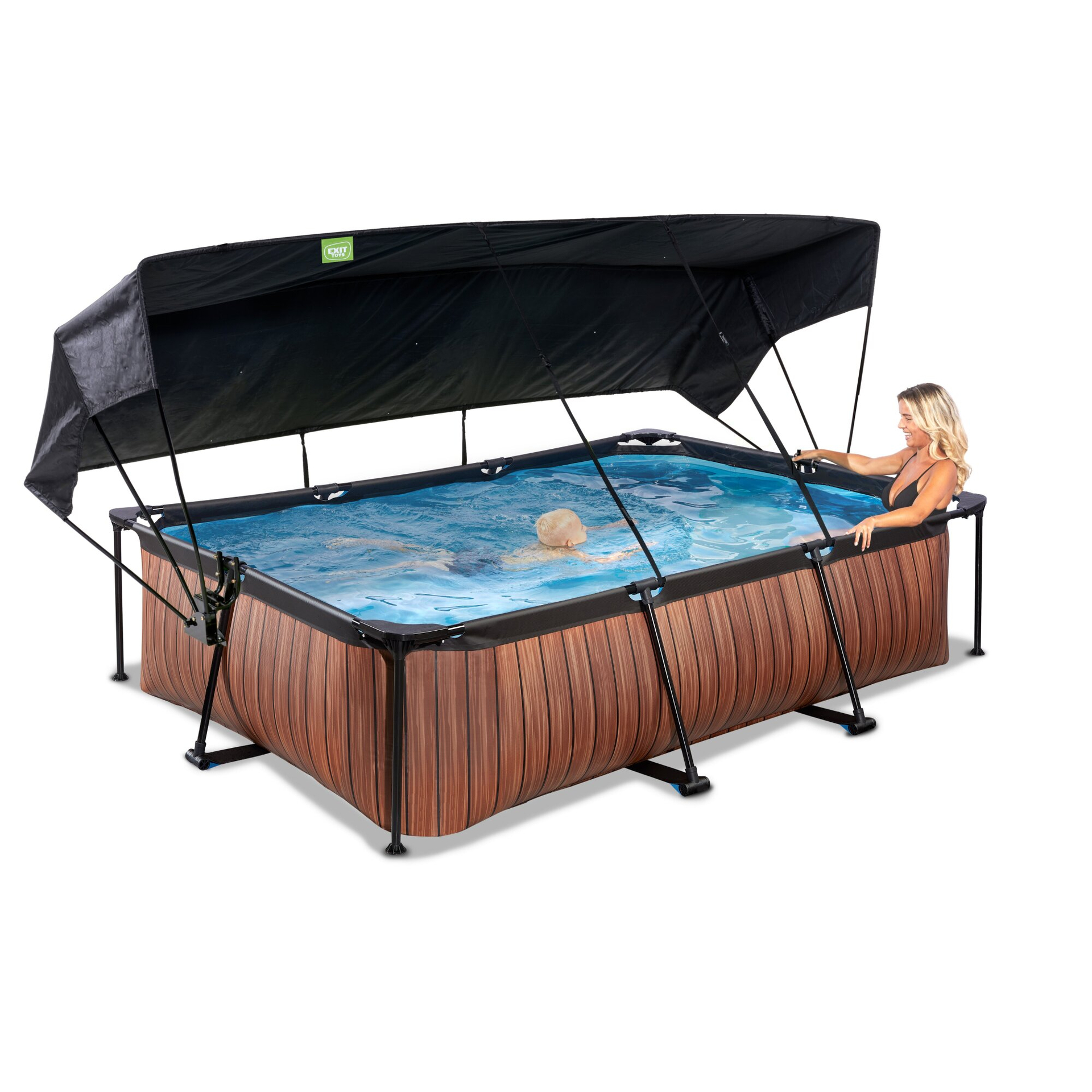 EXIT Wood Pool 300x200x65cm mit Filterpumpe und Sonnensegel - braun