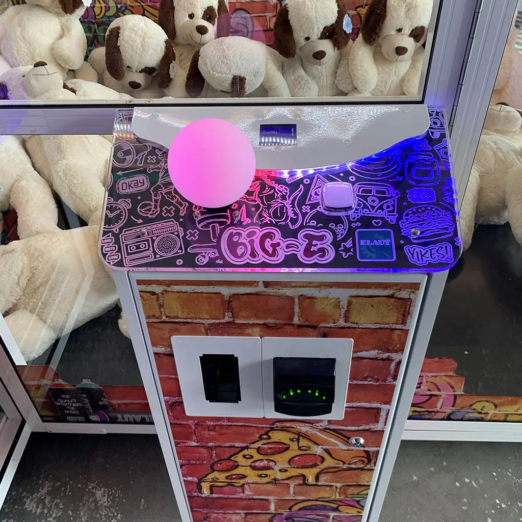 Der Big E, ist ein großer Greifautomat mit robustem Korpus, farbwechselnder Front und lustigen Geräuschen, was ihn zu einem echten Publikumsmagneten macht. Der Automat bietet mehrere Funktionen, wie LED-Beleuchtung an allen Seiten und ein hochwertiges Soundsystem. Vorteilhaft kann der Big E mit Preisen befüllt werden, die bis zu 6 kg wiegen. Eignet sich für das Solospiel, einfaches und intuitives Gameplay für Kinder und deshalb ideal für Spielhallen und Unterhaltungszentren. Beim Big E kann außerdem der Schwierigkeitsgrad mit einem mitgelieferten Messgerät einstellt werden.