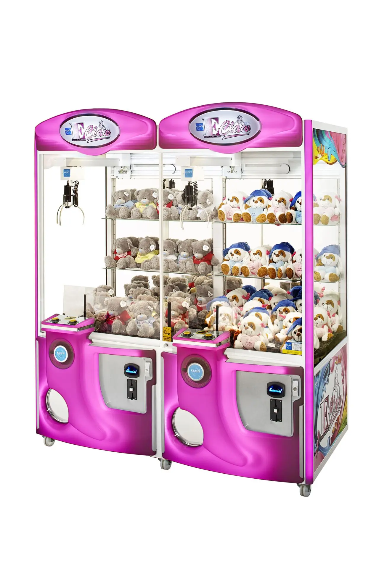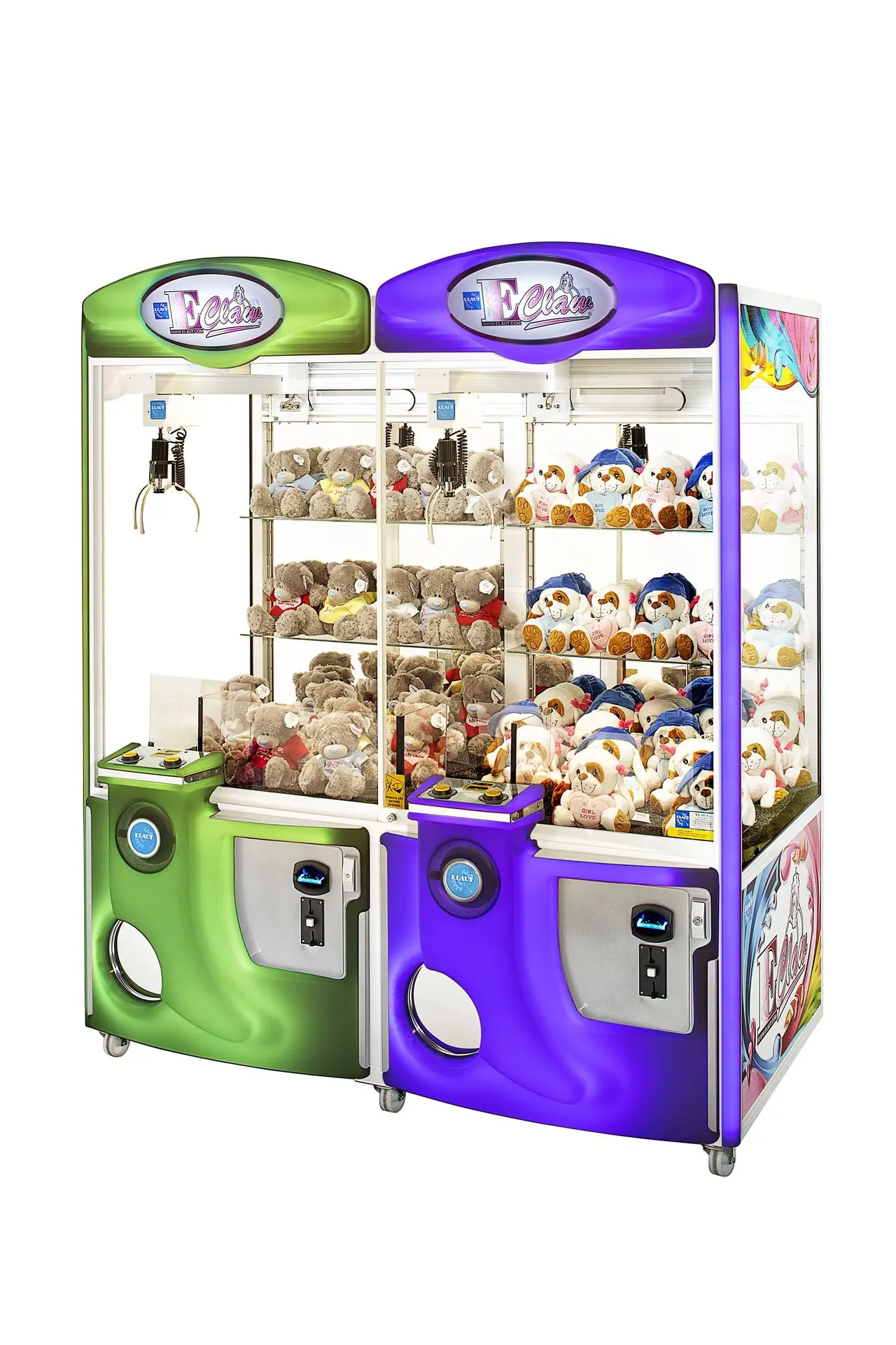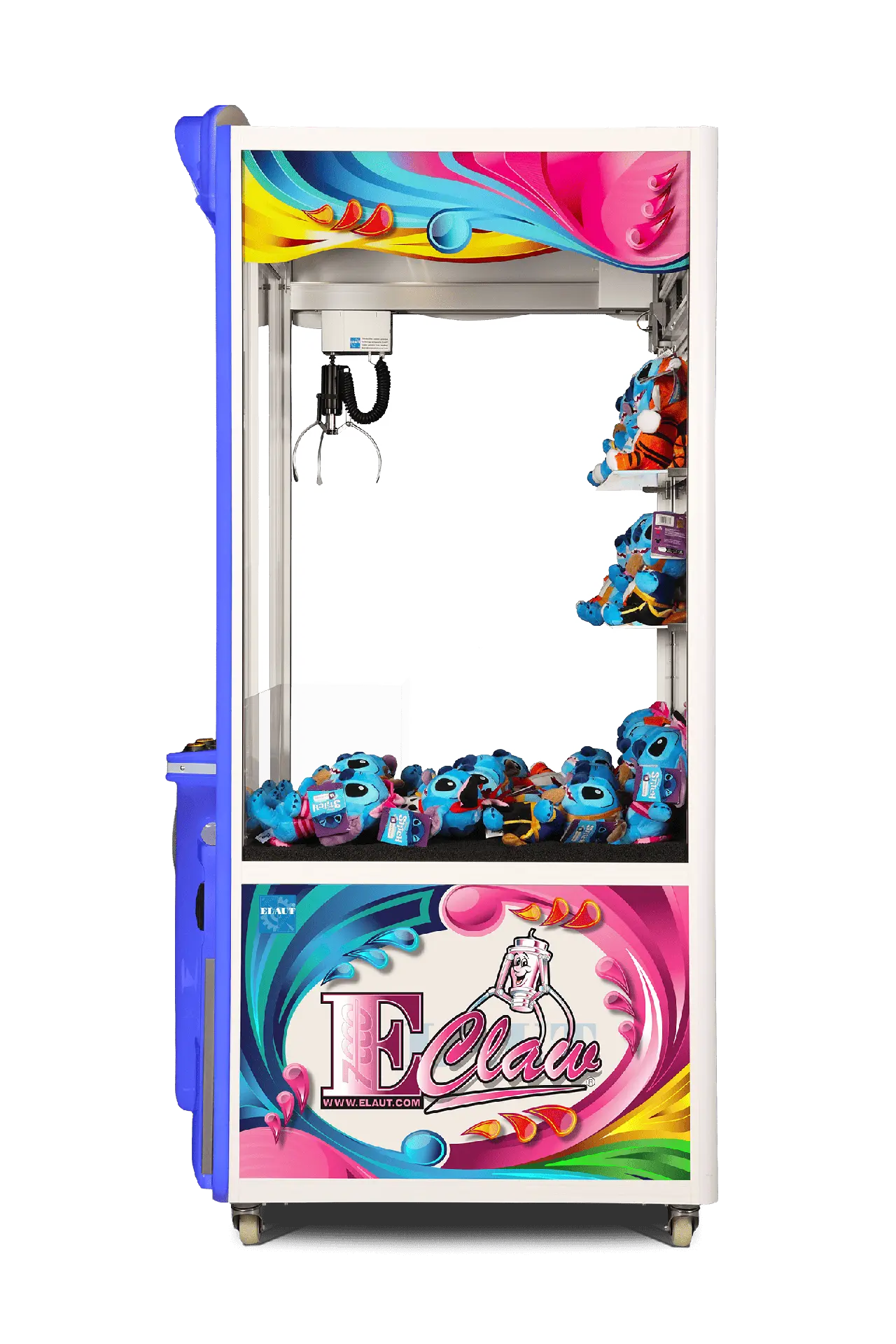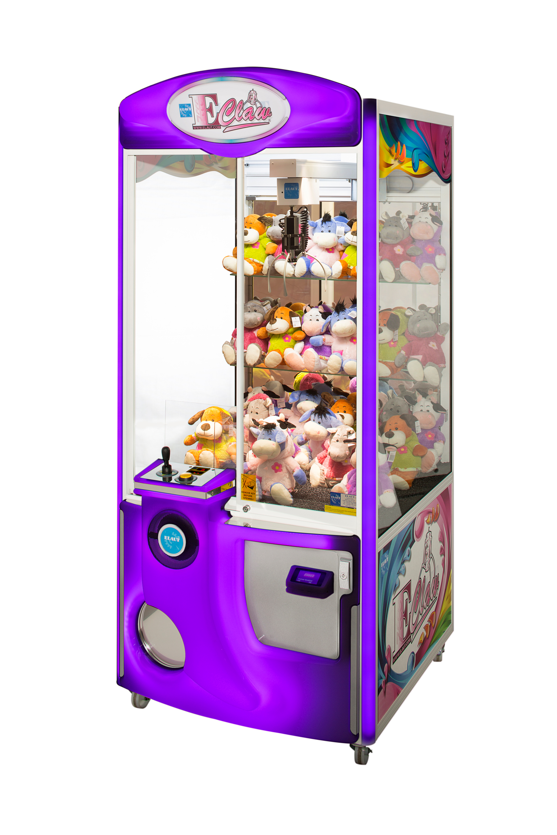 Der E-Claw 900 von Elaut gehört mit seinem ansprechenden Design und robusten Gehäuse zu den beliebtesten Greifautomaten des belgischen Herstellers. Die Geräte von Elaut sind aufgrund ihrer benutzerfreundlichen Software und ihres geringen Energieverbrauchs für Spielhallen mit hohen Besucherzahlen sehr lohnenswert. Die E-Claw-900-Reihe bietet großzügigen Stauraum für zusätzliche Preise und Regale zur Warenpräsentation.