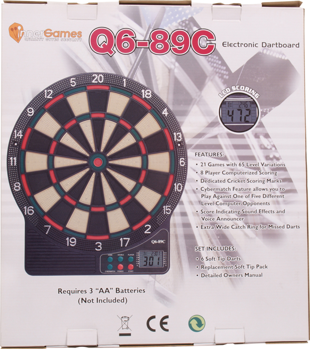Elektronische Softtip-Dartscheibe 21 verschiedene Spiele 65 Spielstufen Geeignet für bis zu 8 Spieler Soundeffekte Automatischer Punktezähler Inklusive 6 Softtip-Darts Spiel gegen den Computer Batteriebetrieben