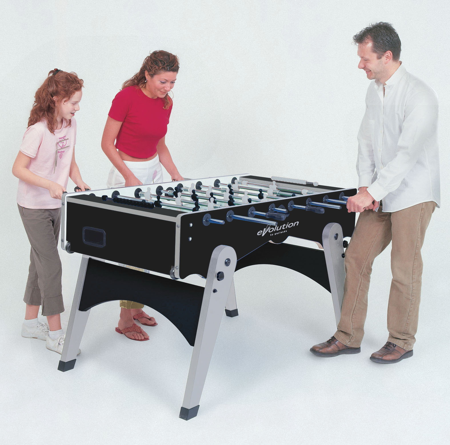 Bei Platzmangel einfach die Füße einklappen, und schon ist der Tischkicker Foldy einfach zu verstauen. Die Gummikanten erlauben eine sichere Stütze und die Rollen garantieren einen einfachen Transport. Ansonsten besitzt der Kickertisch die üblichen Garlando Qualitäten, allerdings mit den klappbaren Tischbeinen. Die bekannt schnelle Spielfläche, sowie die robusten Kickerfiguren machen diesen Klappkicker nicht nur zum Platzsparer, sondern auch zum Liebling von Kindern zuhaus oder in der Schule.