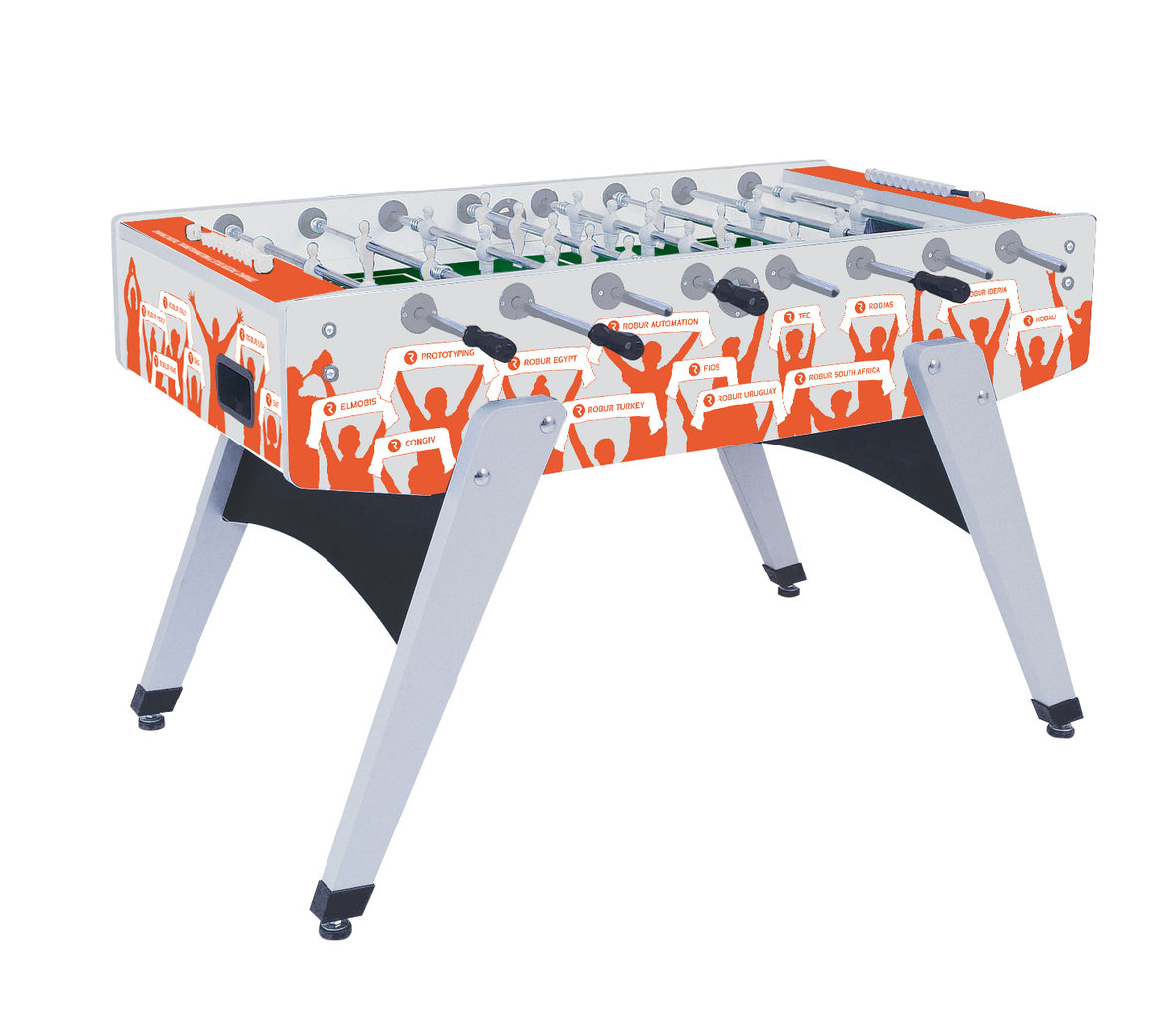 Die Tischkicker von Garlando erhalten Sie von nun an auch mit Branding. Somit präsentieren Sie Ihr Unternehmen einfach auf Messen oder in Ihrer Firma. Im hochwertigen 4-C Foliendruck kann der Kickertisch rundum gestaltet werden. Die zur Verfügung stehenden Modelle sind: PROMO 10, PROMO 20,PROMO 200, PROMO 500, PROMO 2000, Master Champion, Olympic Indoor, Olympic Outdoor, XXL, XXXL und World Cup. Die Farbe der Spieler ist ebenfalls individualisierbar.