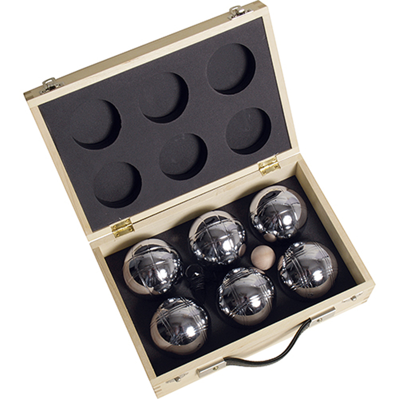 6 Kugeln, MetallHolz-CochonnetMaßbandAufbewahrungskoffer aus HolzDurchmesser 74 mmEinschließlich RegelnHolzbox