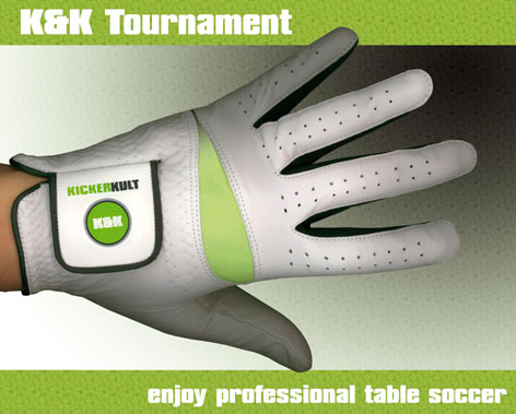 Der Handschuh wird hauptsächlich zum Kickern verwendet und hat einen guten Sitz und gute Qualität