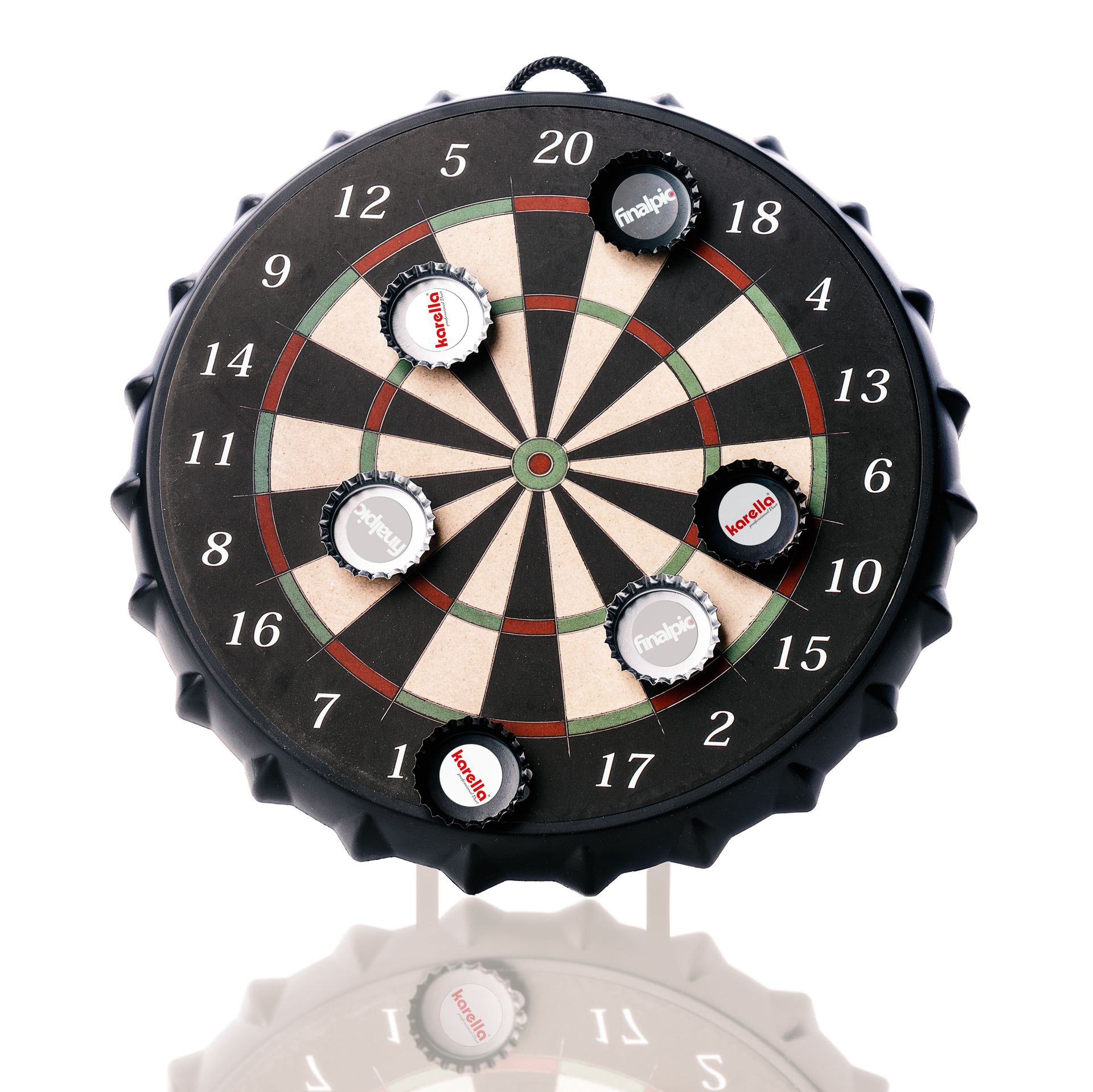 - magnetische Dartscheibe im Bristle Look in Form eines großen Kronkorkens