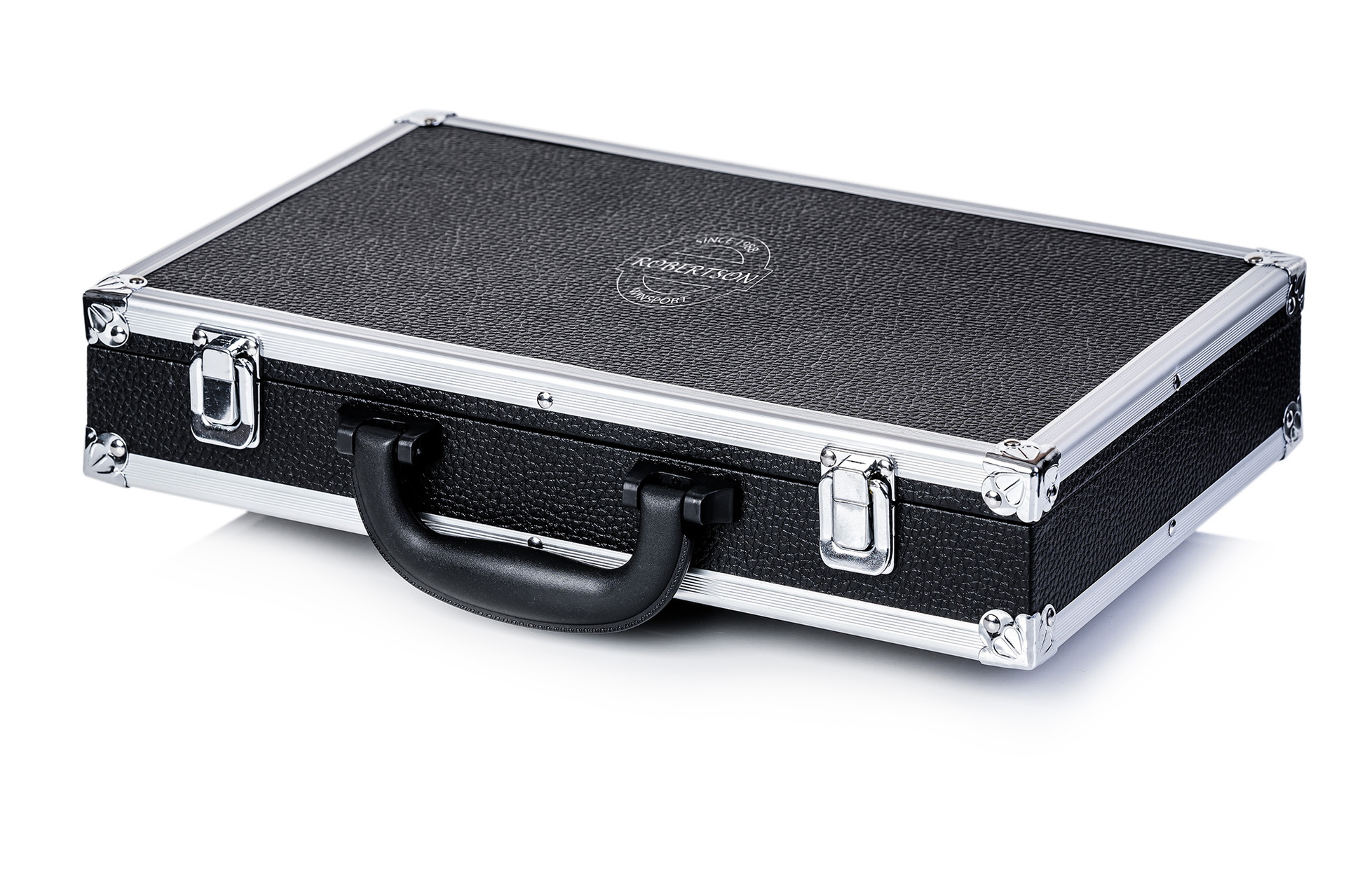 Der Kugelkoffer dient der idealen Aufbewahrung sowie einem sicheren Transport Ihrer Snookerkugeln. Er ist sehr präzise verarbeitet und zum Schutz mit auffälligen Aluleisten und zusätzlich mit silberfarbenen Eckschutz versehen. Das stabile Gehäuse ist mit schwarzer Lederstruktur überzogen. Der Deckel ist mit zwei Scharnieren und zwei verchromten sicheren Verschlussklappen ausgestattet.