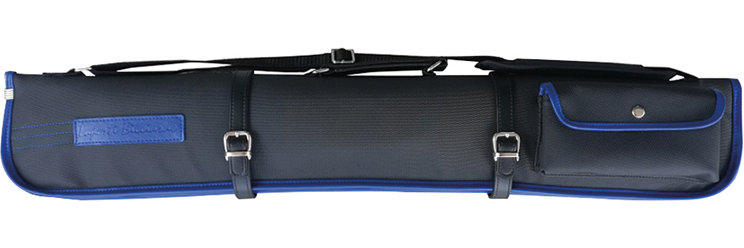 Anzugstasche für 2 Böden und 2 TipsAbteiliges Fach für BillardzubehörSchulterriemen und TragegriffMarke: LapertiFarbe: schwarz mit blauen Details