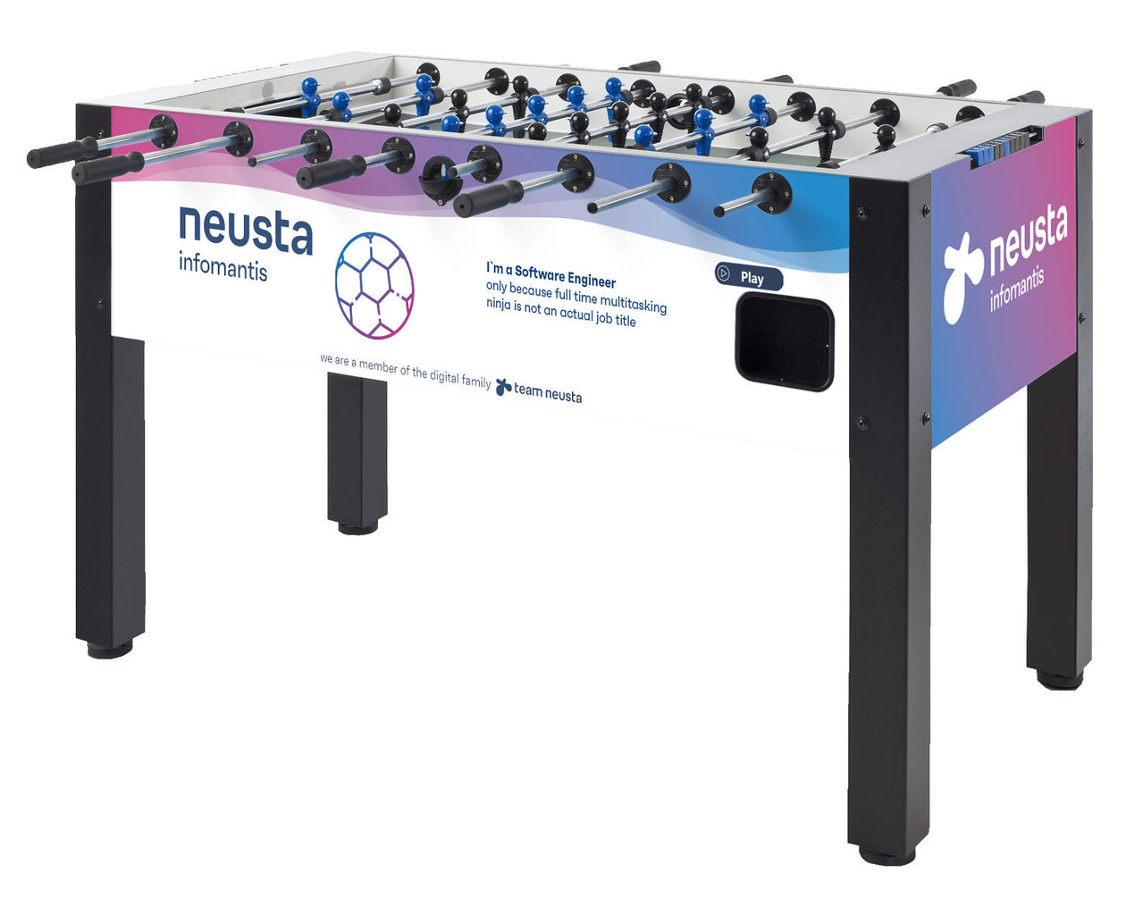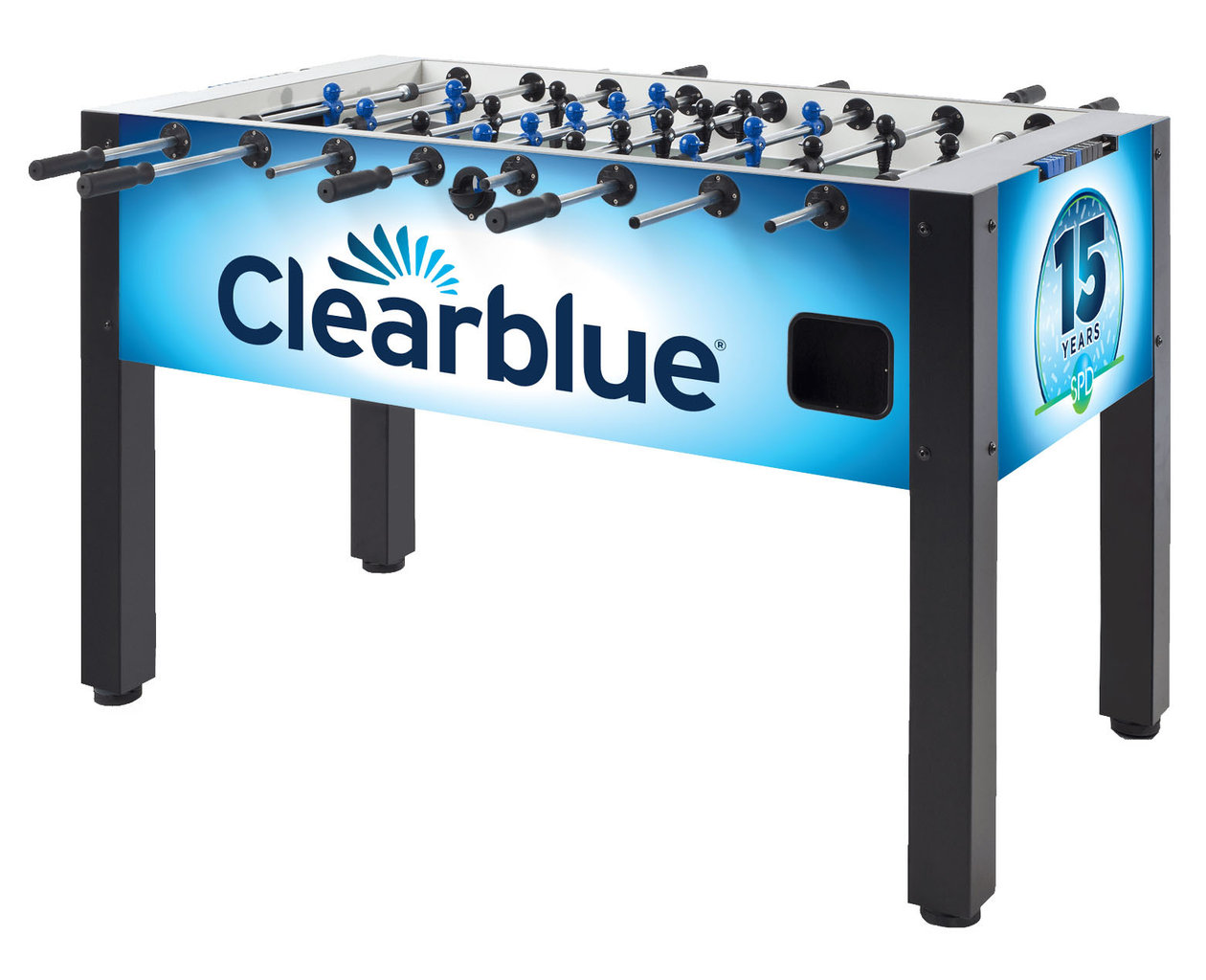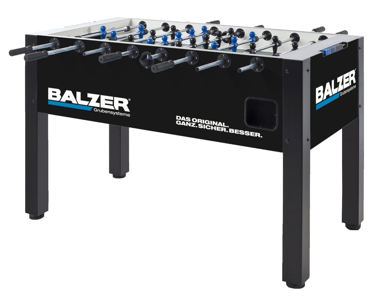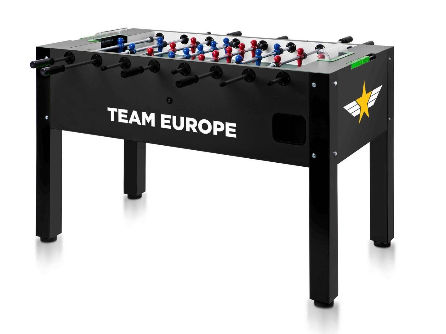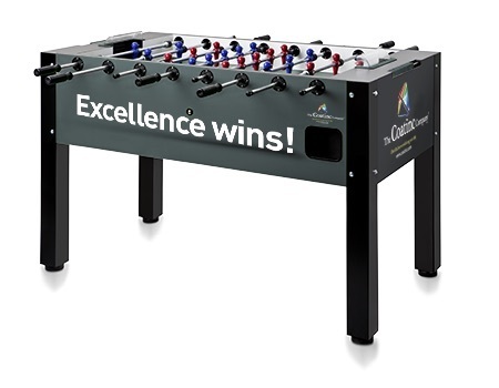 Präsentieren Sie Ihr Unternehmen mit einem gebrandeten Kickertisch der Qualitätsmarke Leonhart.