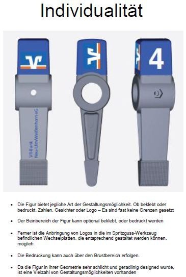 Die Figur kann auf Anfrage individuell bedruckt werden. (z.B. Firmenlogo, Spielernamen etc.)