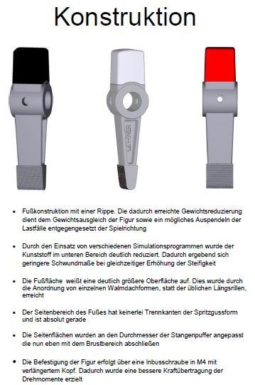 Die neue austarierte Kickerfigur der Fa. Lettner in schlichtem Design überzeugt durch die beeindruckenden Spieleigenschaften. In Zusammenarbeit mit dem Ulmer Zentrum für wissenschaftliches Rechnen UZWR und der Hochschule für Gestaltung, insbesondere Herrn Prof. Horst Diener Dipl. Des. HfG, entstand eine neue Art der Tischfußballfigur. Die Figur ermöglicht wesentlich schnellere und Schüsseals jede andere Soccer-Figur und wird ab sofort auf Challenger Turnieren, der Bundesliga und der DTFB DM gespielt. Diese Figur garantiert nicht nur auf Lettner Tischen ein überzeugendes Spielvergnügen sondern passt auf alle 16mm Stangen.