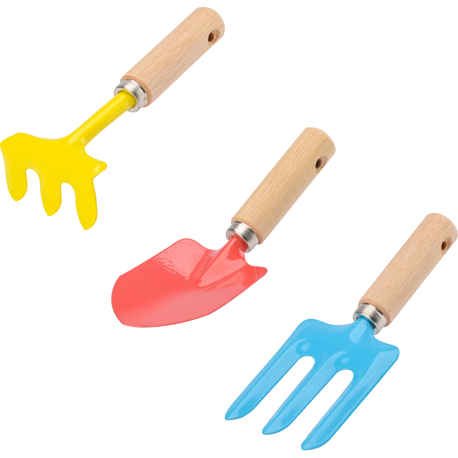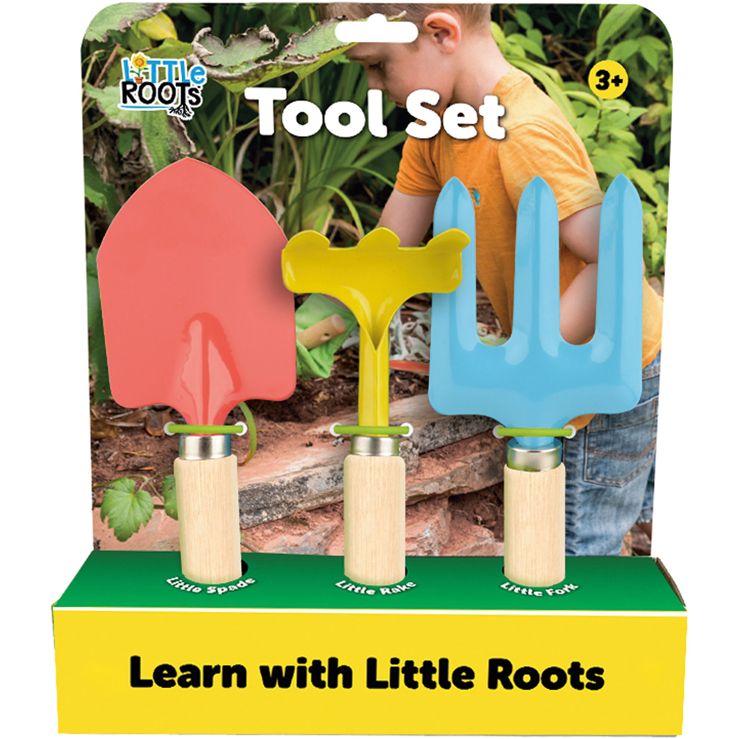 Schaufeln, harken und spielerisch die Natur entdecken! Kinder freuen sich über ihren eigenen Gemüsegarten und helfen gerne bei der Pflege der Pflanzen im Garten oder auf dem Balkon. Die Gartengeräte von Little Roots sind speziell für Kinder entwickelt worden. Die Werkzeuge sind leichter und haben kleinere Griffe, so dass Kinder sie leicht halten und benutzen können. Dieses Little Roots-Gartenwerkzeugset enthält eine Gabel, eine Harke und eine Schaufel. Die Werkzeuge haben eine Länge von etwa 16 cm. Der Griff ist aus Holz, Schaufel, Harke und Gabel sind aus A3-Stahl gefertigt, einer Stahlsorte, die wegen ihrer Verschleißfestigkeit und ihrer Fähigkeit, Stoßkräften standzuhalten, häufig in der Werkzeugherstellung verwendet wird.