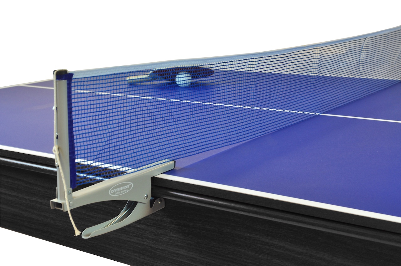 Leichte sportliche Betätigung nach dem Essen ist mit dem Mars De Luxe 3-in-1 Multitisch kein Problem. Blitzschnell ist der Esstisch zum Billard oder Tischtennis Spiel umgebaut. Unter der abnehmbaren Tischauflage befindet sich das Billard-Spielfeld. Durch das mitgelieferte Zubehör von 2x 120cm Queues, 47mm Kugeln, Dreieck, Kreide und Bürste steht dem Spielspaß nichts im Weg. Ebenso schnell gelingt der Umbau zum Tischtennis-Spiel. Nach auflegen des Spielfelds und Anbringung des Netzes kann das Spiel schon beginnen. Zusätzlich zum Netz beinhaltet die Lieferung 2 Tischtennisschläger sowie 2 Bälle. Der Mars De Luxe überzeugt zudem durch elegantes Design in schwarz und höhenverstellbare Füße. Die Kombination aus Design und Funktionalität machen ihn unverzichtbar im modernen Familien-Haushalt.