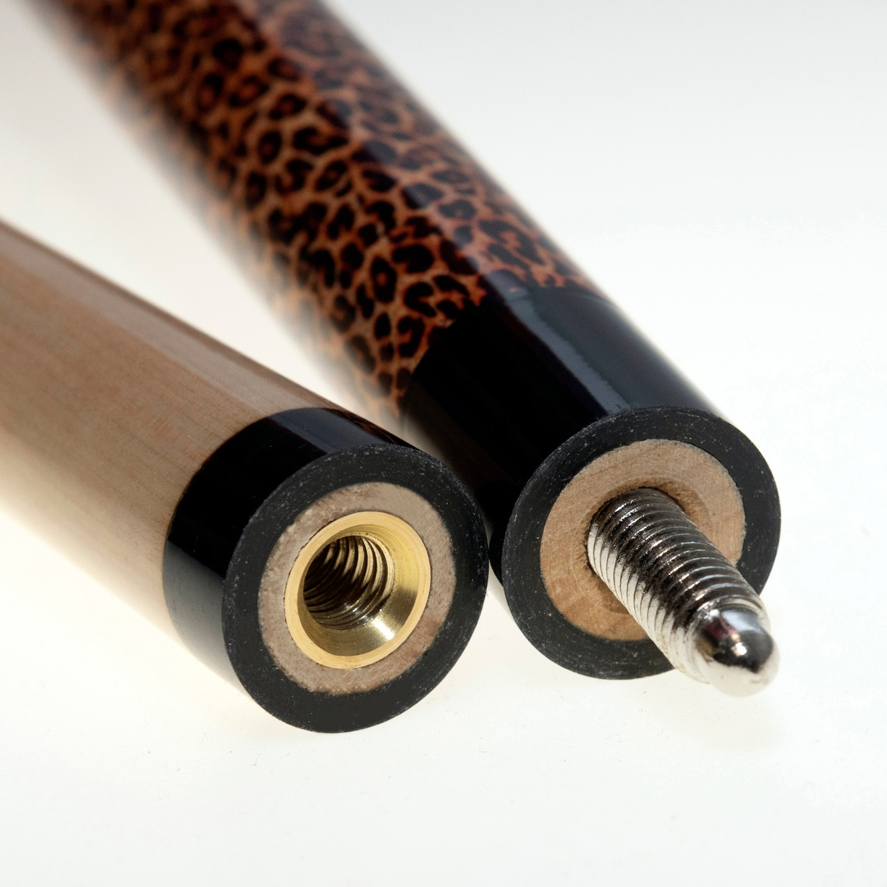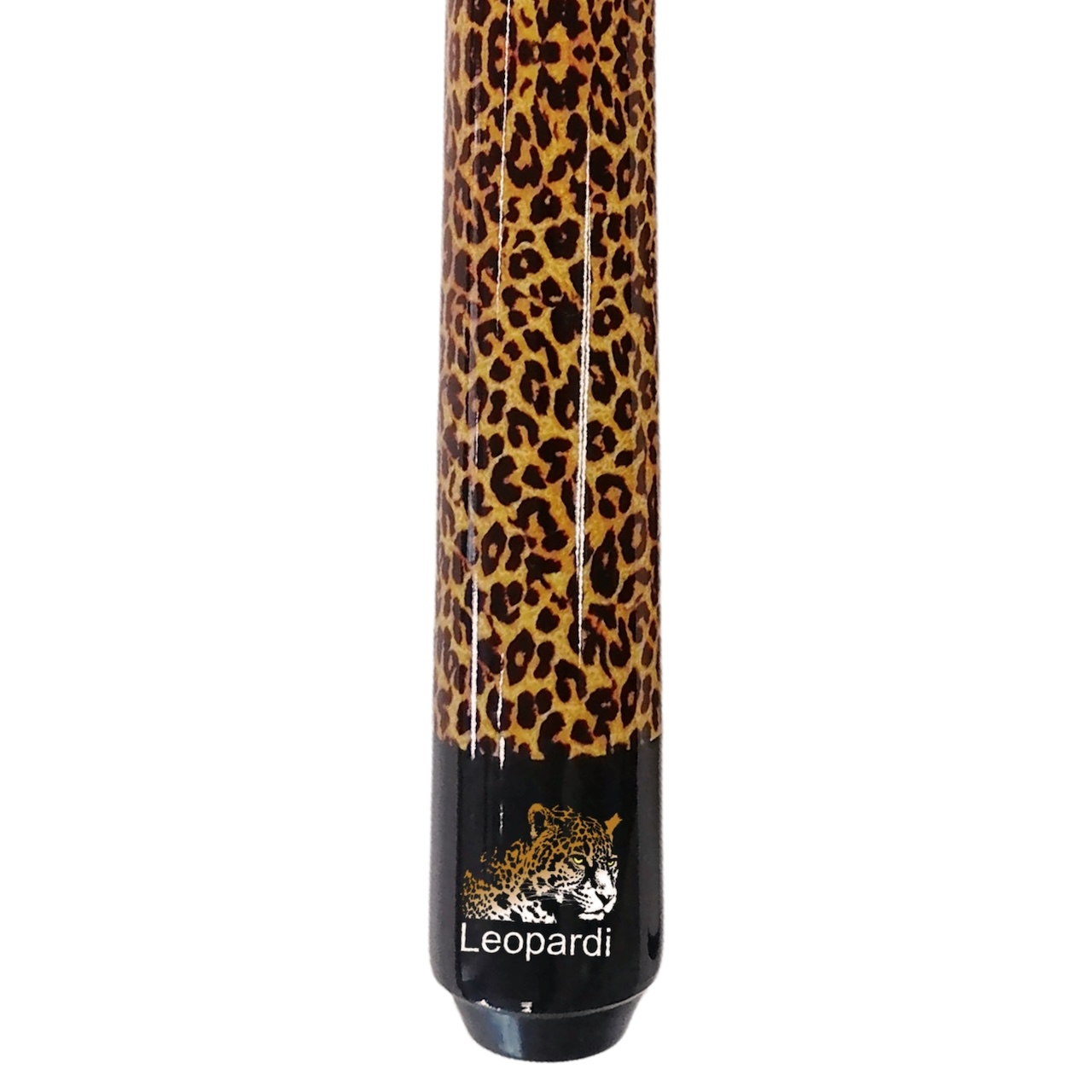 Die Leopardenfell-Optik in feinster Verarbeitung macht das Modell „Leopardi“ zu einem echten Eyecatcher. Das farblich passende, schwarz genarbte Kunstleder im Griffbereich fühlt sich angenehm an und rundet den Leo-Style hervorragend ab. Die schwarze Mütze ist mit dem original Leopardi-Logo bestickt. Der ebenfalls passende schwarze Joint hält das Oberteil mit einem präzisen Stahlgewinde zusammen. Das hochwertige Oberteil aus kanadischem Ahorn ist mit einem 12 mm starken Le Professional" Profi-Klebeleder bespannt. So überzeugt der Leopardi Queue nicht nur durch seine originelle Optik, sondern auch durch sein faires Preis-Leistungs-Verhältnis.