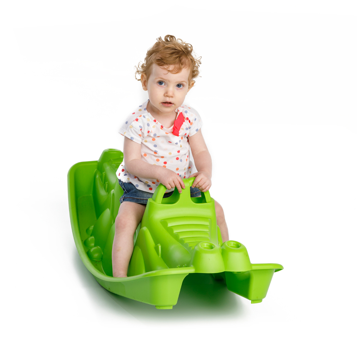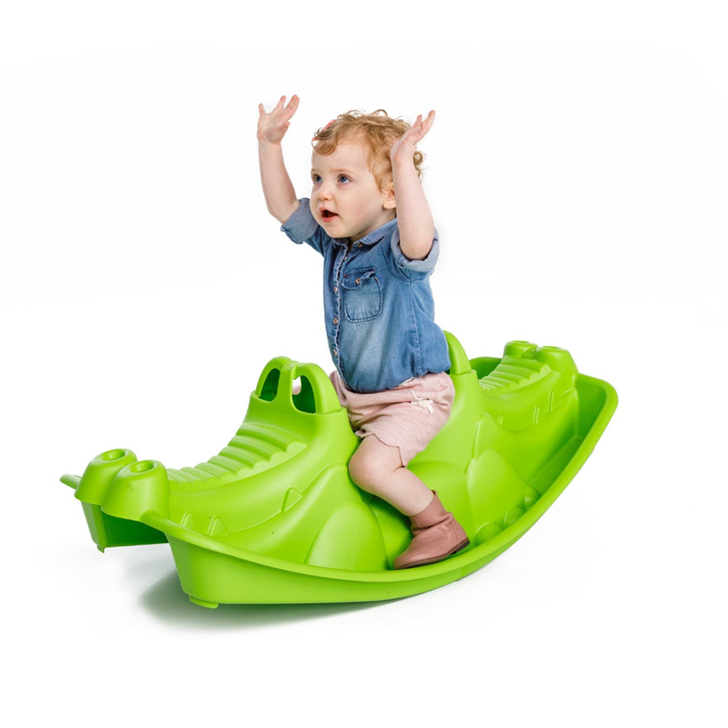 Schaukelwippe in Form eines KrokodilsMaße: 101 x 46 x 33 cmMaterial: KunststoffGeeignet für drinnen und draußenEmpfohlenes Alter: ab 10 MonatenGeeignet für: 1 - 3 KinderMaximallast: 3 x 50 kg