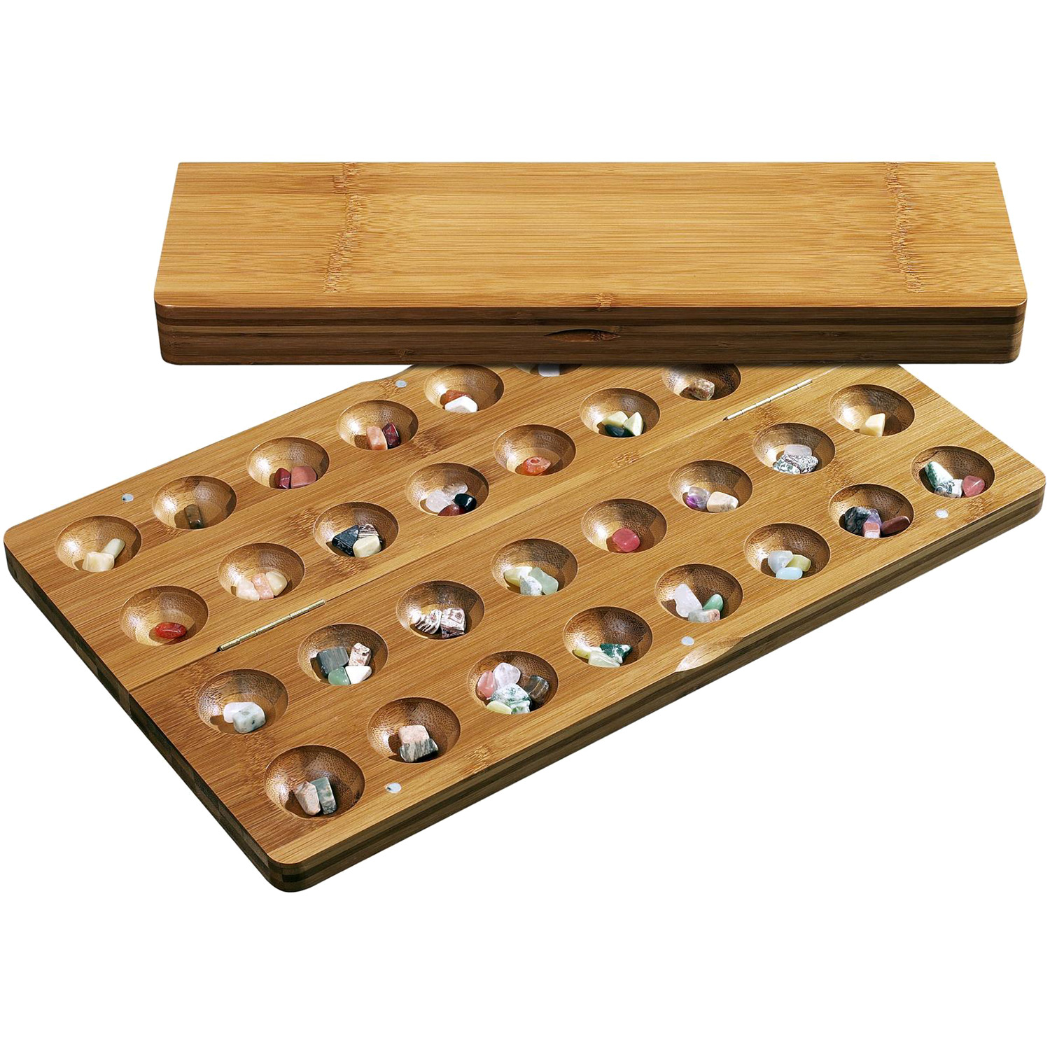 Klappbare KassetteBambusholz 475 x 280 x 20mmSuperior Version von KalahaEchte SteineMagnetverschlussFortgeschrittenes Alter ab 6 Jahren.