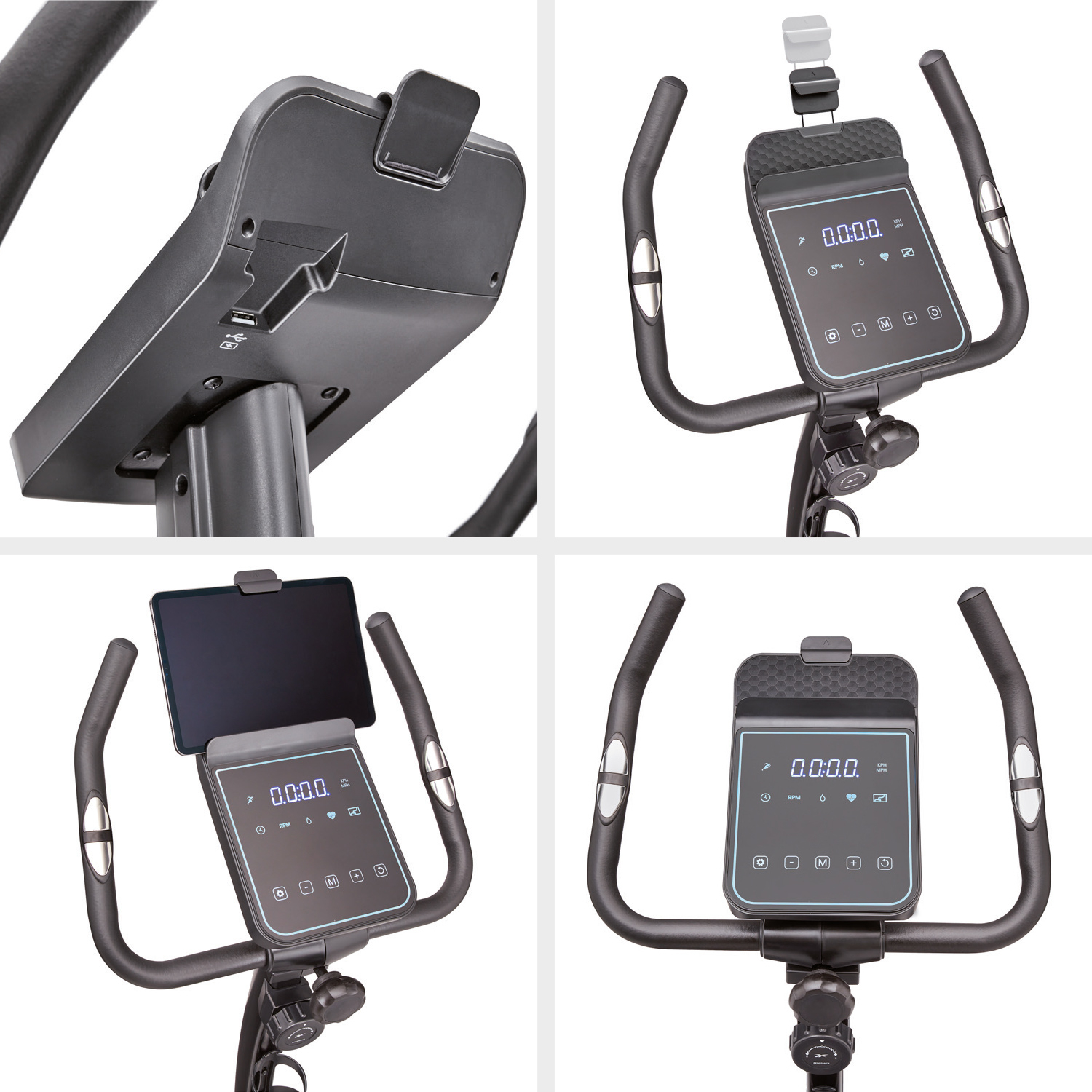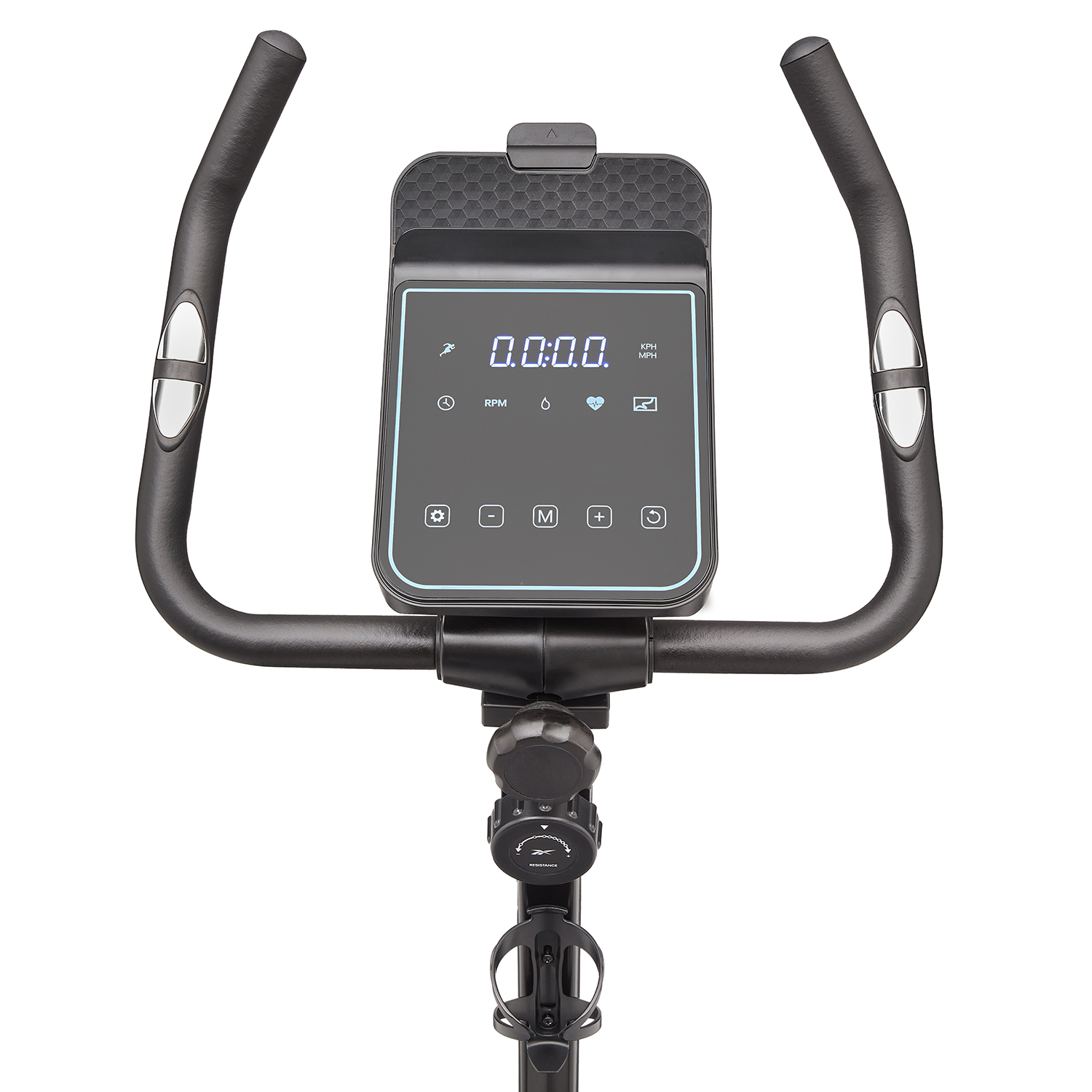 Der Reebok FR20 Heimtrainer kombiniert die solide Zuverlässigkeit eines normalen Fahrrads, das für intensive Nutzung geeignet ist, mit der neuesten Heimtrainer-Technologie für das beste Radfahr-Erlebnis zu Hause. Darüber hinaus hat der Reebok FR20 Bike ein stilvolles Design, das in jedes Interieur passt. Der Reebok Heimtrainer FR20 verfügt über eine robuste 6-kg-Schwungscheibe mit gleichmäßiger und gleichmäßiger Rotation. Mit 8 Widerstandsstufen, 3 Zielprogrammen und einer Herzfrequenz-Erholungsfunktion ist der Reebok FR20 Heimtrainer ideal für Dauer- und Intervalltraining und bietet gleichzeitig die Funktionalität für Sprint- und Hochleistungstraining. Verfolgen Sie Ihre Fortschritte auf der LED-Konsole mit Touchscreen und einer Reihe von Live-Feedback-Statistiken, einschließlich Zeit, Entfernung, Kalorien, Herzfrequenz und Drehzahl. Integrierte Handgelenksensoren an den Griffen messen und melden Ihre Herzfrequenz für sicherere und effektivere Cardio-Sessions. Der komfortable, dicht gepolsterte Sattel ist sowohl vertikal als auch horizontal verstellbar. Die Sattelhöhe ist von 61-87 cm einstellbar. Dank des verstellbaren Sattels und der verstellbaren Griffe können Sie den Reebok FR20 Heimtrainer ganz einfach in die für Sie optimale Sitzposition bringen, um ein komfortables und effektives Training zu absolvieren. Die selbstnivellierenden Pedale mit verstellbaren Riemen sorgen für zusätzliche Sicherheit und Stabilität während der Fahrt. Der Reebok FR20 Heimtrainer verfügt über eine Handy-/Tablet-Halterung oberhalb der Konsole, die einen optimalen Blickwinkel für Ihre Lieblingsprogramme oder Online-Trainingskurse bietet. Mit den integrierten Schwerlast-Transporträdern lässt sich der Reebok FR20 Heimtrainer leicht bewegen und das Nivellierungssystem macht es einfach, den Heimtrainer zu nivellieren.