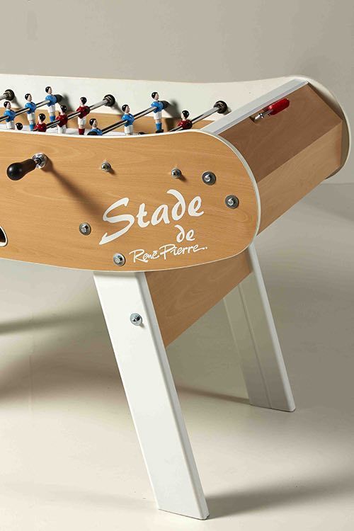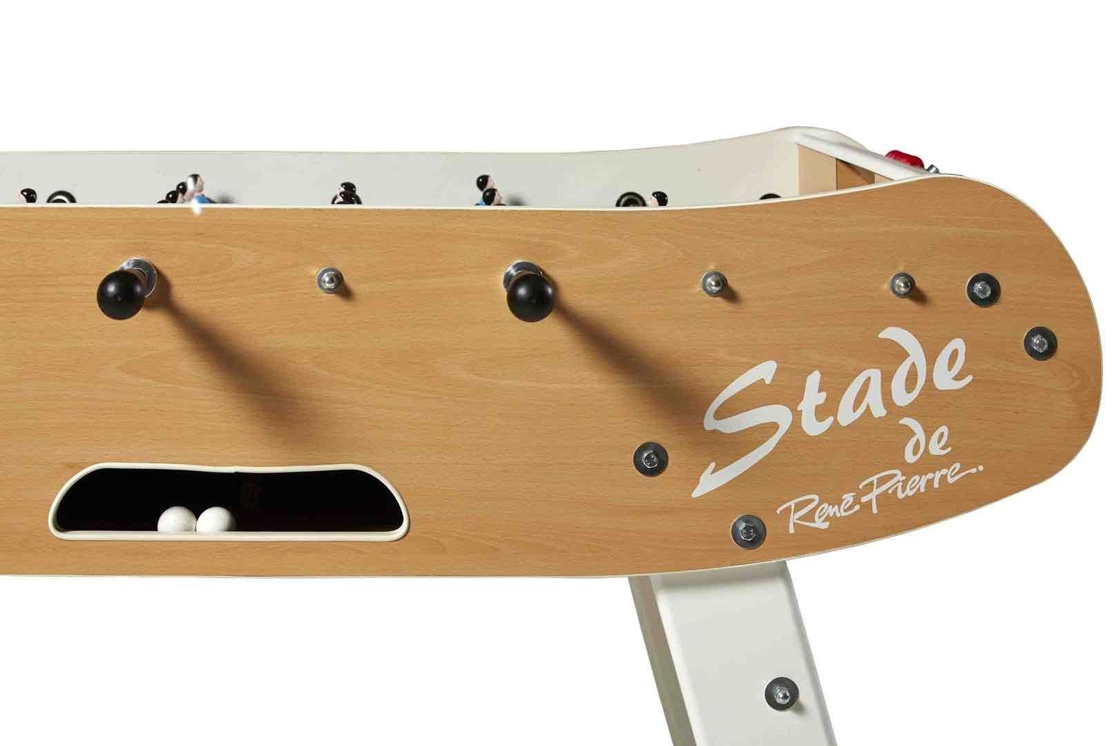 Hohe Stabilität, sowie gute Spieleigenschaften, sind die Werte die den René Pierre Stade Kickertisch auszeichnen. Das Finish aus Holz und einem weißen Anstrich, verleihen dem Tischkicker eine edle Optik. Die Spielfläche aus Linoleum, die handbemalten Figuren aus Metal sowie die ergonomischen Griffe sorgen für gute Spieleigenschaften und schnelle Schussgeschwindigkeiten.