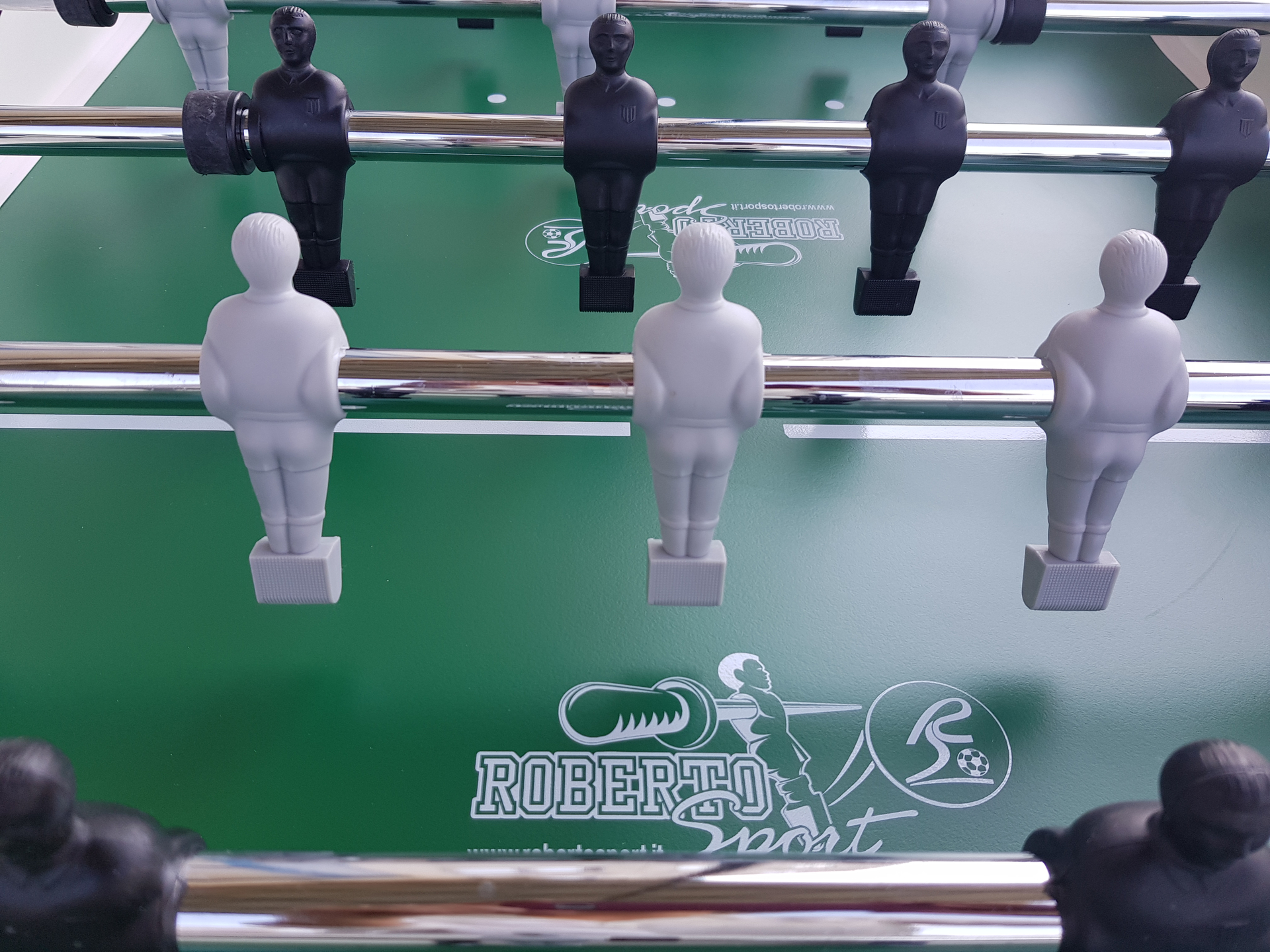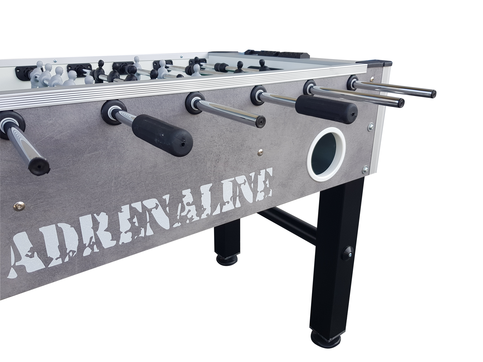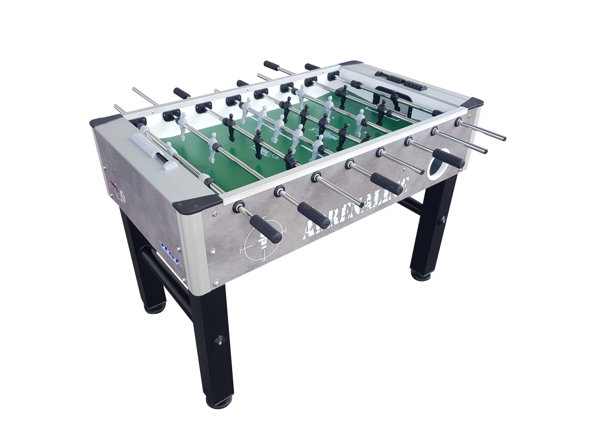 Durch seine hohe Griffigkeit ermöglicht der Roberto Sport Adrenaline Tischkicker ein sehr exaktes Spiel. Der rauhe Ball verlangsamt das Spiel etwas sodas enormes Spielvergnügen aufkommt. Dieser Kickertisch ist nicht nur für Profis, Anfänger erlernen hier schnell die grundlegenden Schuss- und Passarten. Auch dieser Kickertisch wird direkt ab Lager frei Bordsteinkante geliefert.