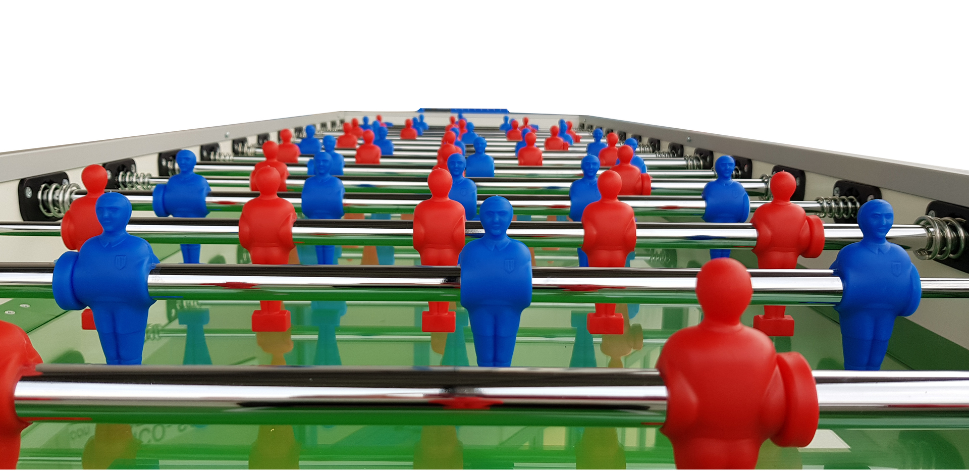 | Spielfeld: | Sandgestrahlte Glasspielfläche mit aufgesetzten Banden |