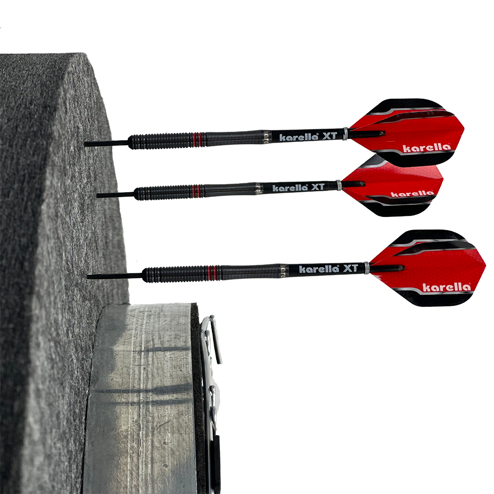 Dartpfeile erzeugen beim Auftreffen auf dem Board ein „Klopfgeräusch“, das teilweise sehr als sehr störend im eigenen Umfeld oder vom Nachbarn wahrgenommen werden kann. Zusammen mit Schallschutzexperten hat Karella jetzt die perfekte Lösung, um das Geräusch fast vollständig zu eliminieren. Auf eine solche Erfindung haben Dartspieler schon lange gewartet.