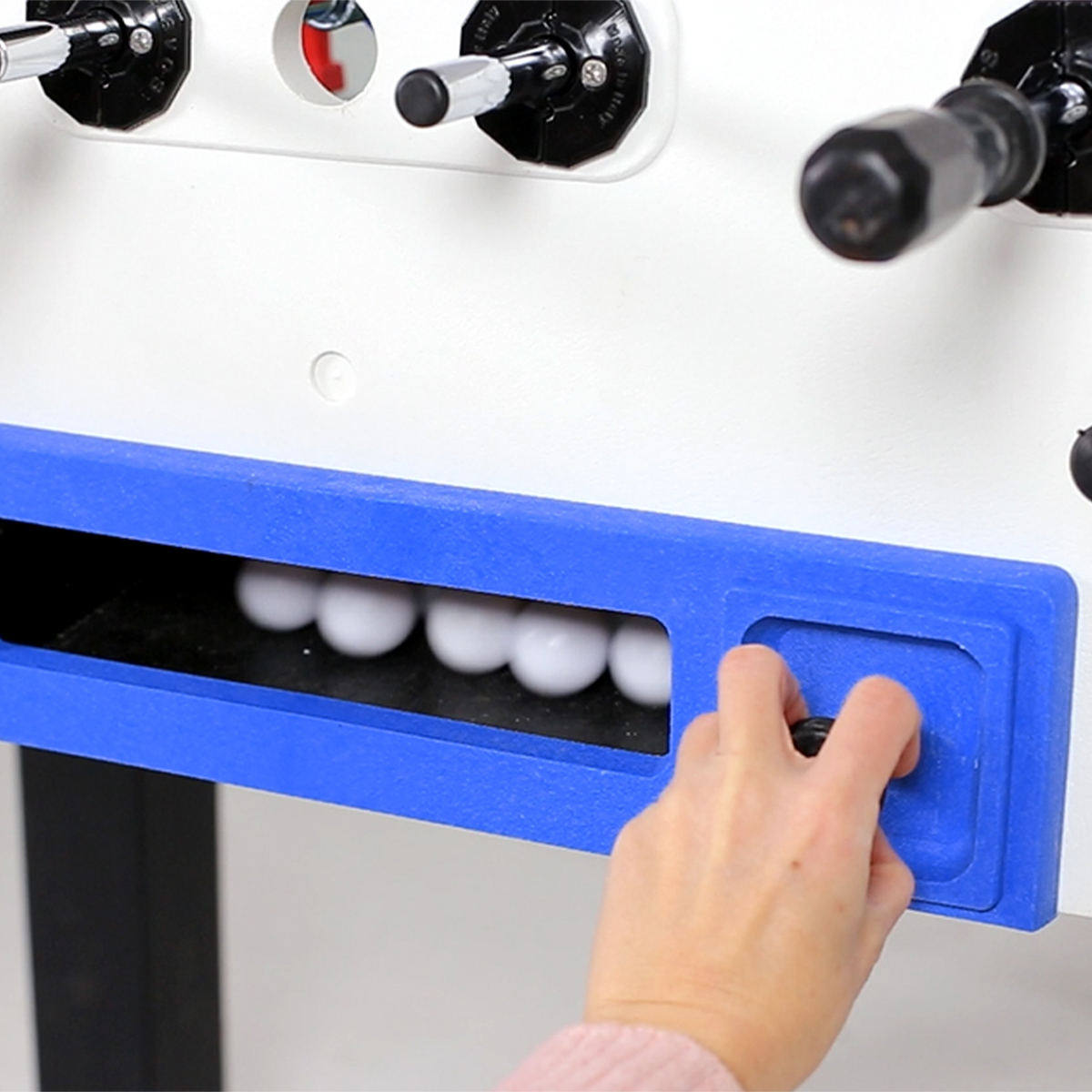 Nach Gebrauch bitte mit einer All-Wetterplane abdecken. Über die gemäßigten und warmen Monate reicht es aus, den Tisch unter eine Überdachung oder ein Vordach zu stellen und ihn mit der Abdeckplane abzudecken, um diesen gegen Schmutz und Regen zu schützen. Um im Winter einer Vereisung vorzubeugen sollte dieser Outdoor-Kicker in der kalten Jahreszeit, vornehmlich im Winter, Wind- und Wettergeschützt untergestellt werden– idealerweise in einem geschlossenen Schuppen, Gartenhaus oder Kellerraum.