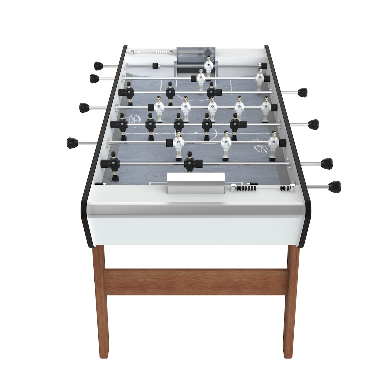 Der Stella Loisirs Home Outdoor Tischkicker eignet sich aufgrund seiner Wetterbeständigkeit perfekt für eine ganzjährige Außennutzung. Ausgewählte Materialien wie: Aluminium, rostfreier Stahl und wetterfestes Holz sorgen ebenfalls für sehr gute Spieleigenschaften. Der mit Teleskopstangen welche durch Gleitlager aus rostfreiem Stahl laufen, ausgestattete Stella Loisirs Outdoor verfügt zudem über seitliche Ballausgaben sowie einzeln verschraubte Figuren. Die robusten Gummipuffer bieten gute Haltbarkeit und verfügen über gute Absorbtionsfähigkeiten.