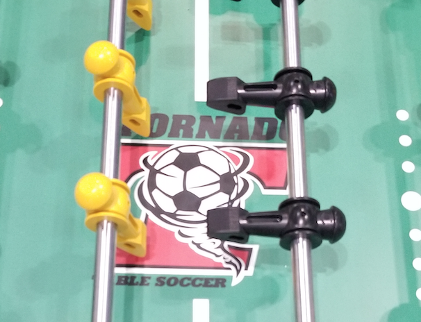 Der Tornado Kicker erlaubt extrem schnelle Pässe zwischen den Figuren derselben Stange und hervorragende Push- und Pull-Shots. Die meisten Spieler spielen jedoch an diesem Tisch den Jet.