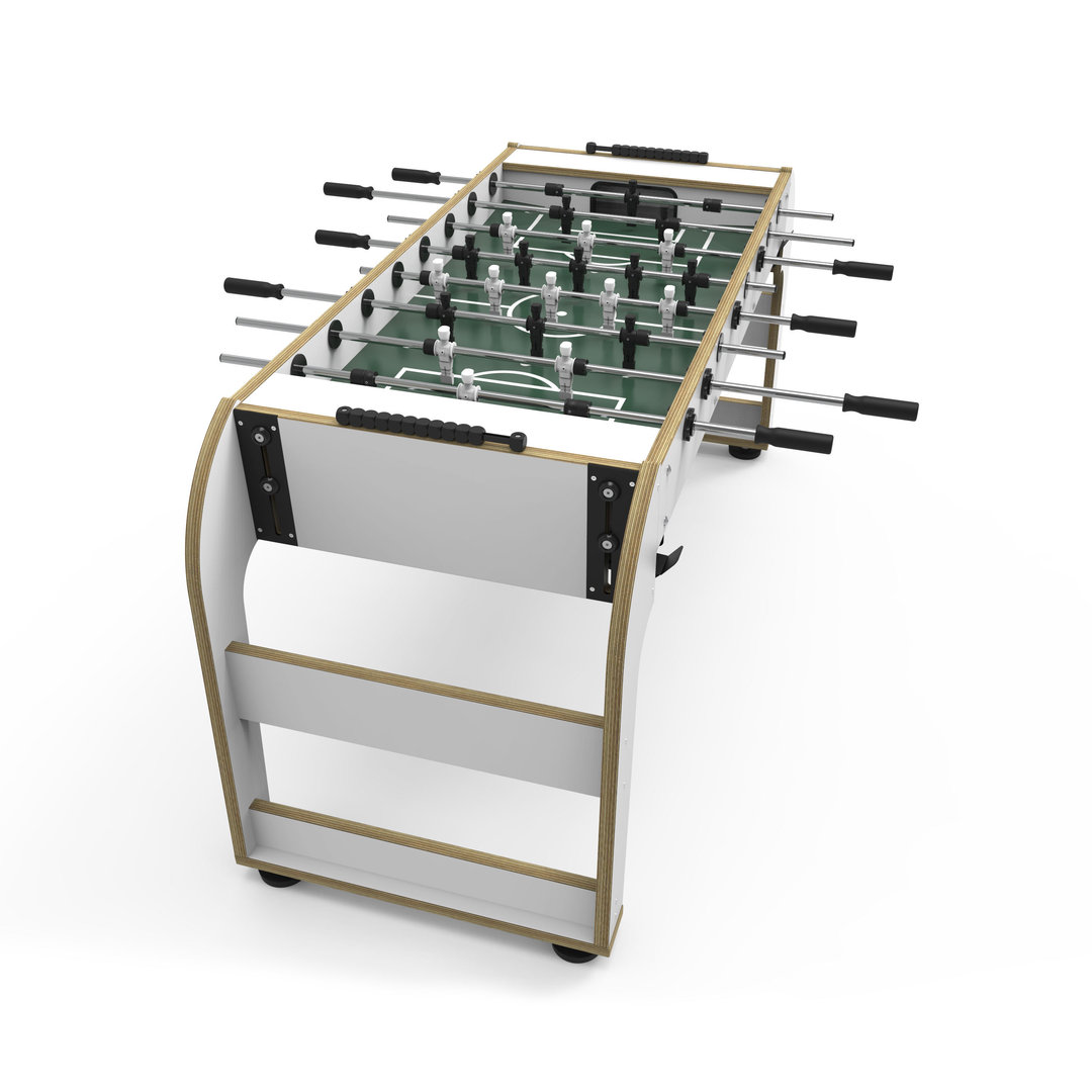 Um die Faszination Tischfußball möglichst jedem nahe bringen zu können hat die Firma Ullrich einen Tischkicker entworfen, der es auch Gehbehinderten ermöglicht ihr Tischfußball Talent unter Beweis zu stellen. Durch die Konstruktion mit außenliegenden Tischbeinen entsteht genug Platz um mit einem Rollstuhl an den Tisch heran zu fahren oder einen Stuhl am Tisch zu platzieren. Ein weiterer Vorteil des Designs ist es, dass der MultiFlex in der Höhe zwischen 80,5 cm und 93,5 cm verstellt werden kann. Je nach Altersklasse oder gesundheitlichen Umständen kann der Tisch durch einen einfachen Inbusschlüssel auf die passende Höhe gebracht werden und ermöglicht es somit Jung und Alt den einzigartigen Sport Tischfußball zu genießen. Für optimale Spielbedingungen wurden für den Kickertisch nur hochwertige Materialien verwendet. Der Korpus besteht aus verzugfreiem Multiplex, dass in Verbindung mit dem bewährten Ullrich Spielfeld und den Spielfiguren für Turnierbedingungen sorgt. Auf Anfrage kannd er Tisch auch mit Wechsellagern (+ 25 €) geliefert werden, wodurch der Ain- und Ausbau der Stangen blitzschnell von statten geht. Neben diesen Lagern gibt es als weitere Konfigurationsmöglichkeit den Tisch mit Teleskopstangen (+ 200 €). Sollten Sie eine dieser veränderten Konfigurationen wünschen, bitte vermerken Sie das bei der Bestellung im Kommentarfeld.
