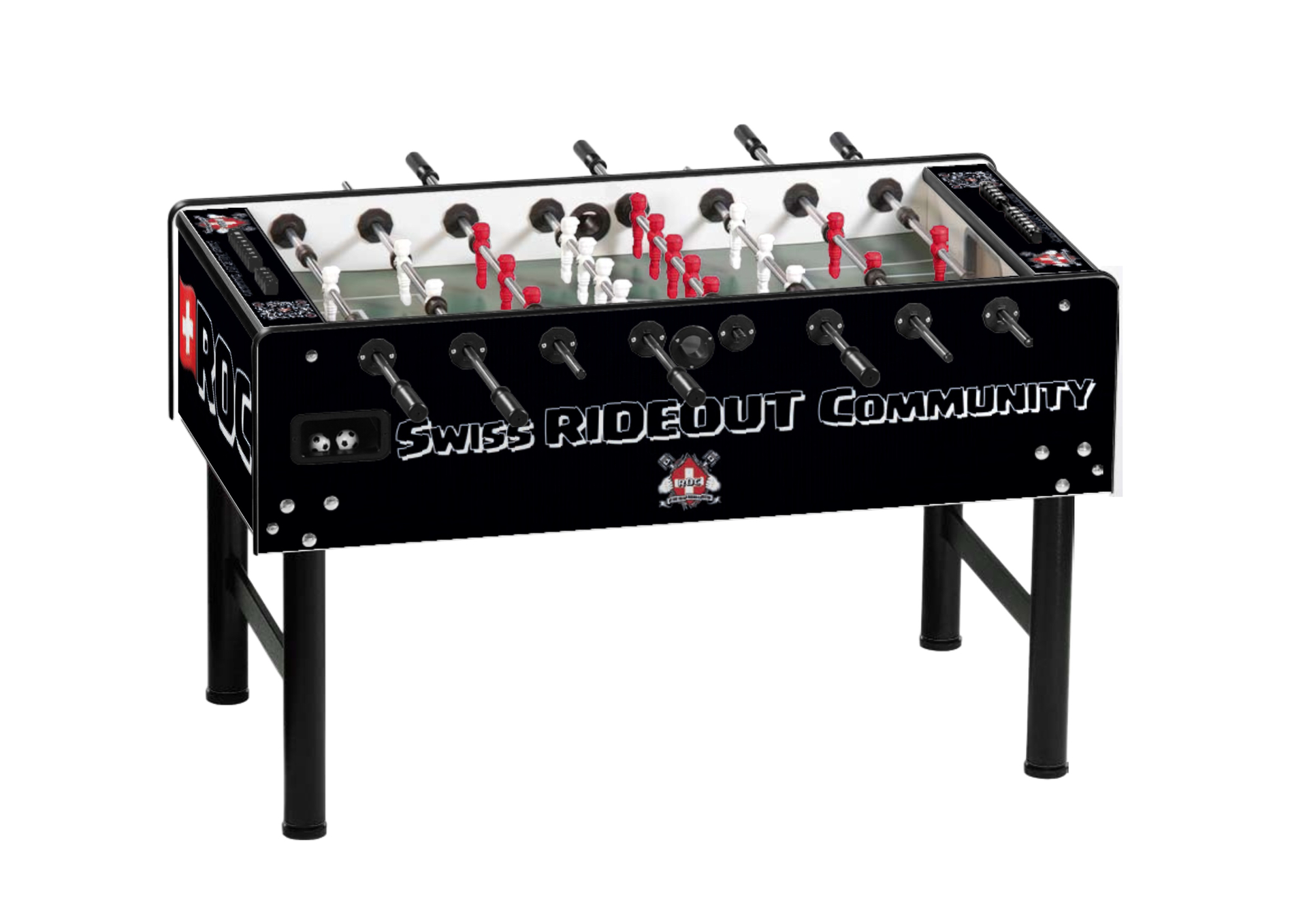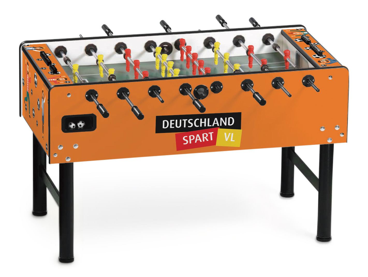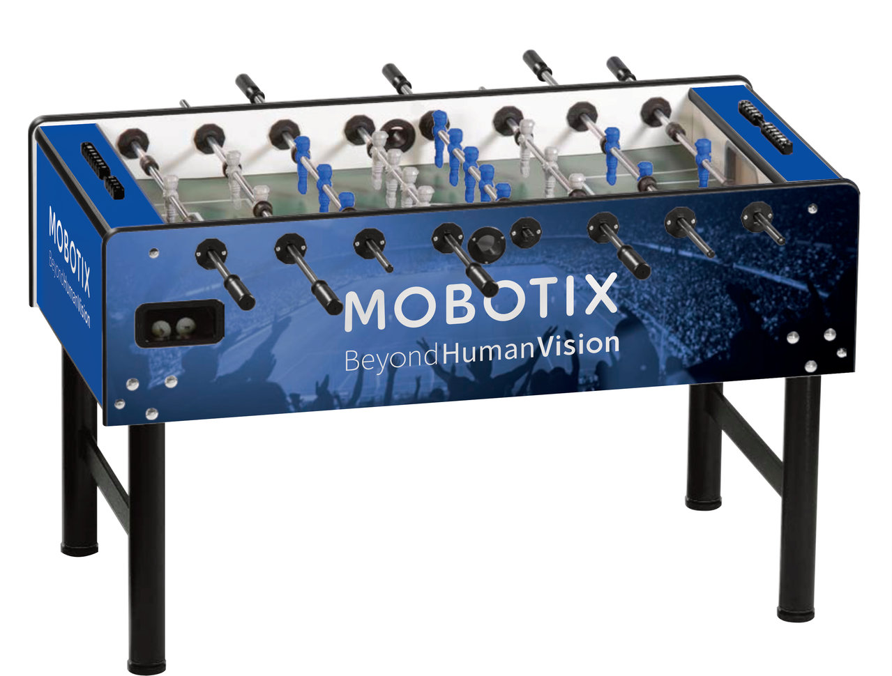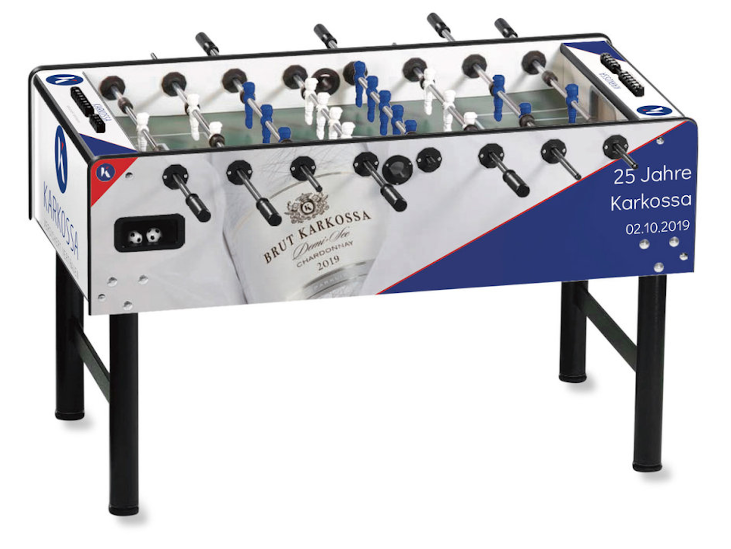 Individualisieren Sie Ihren Kickertisch! Mit dem hochwertigen Branding auf Ihrem Vector Tischkicker. Gestalten Sie die Seiten-, Längs- und Oberfläche Ihres Kickers frei in 4c und schaffen Sie sich somit ein einzigartiges Möbelstück.