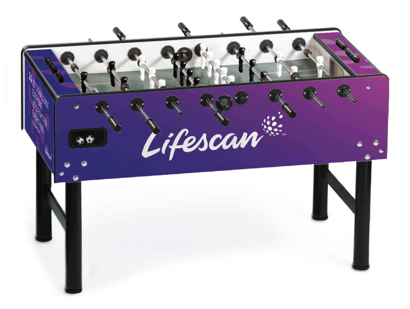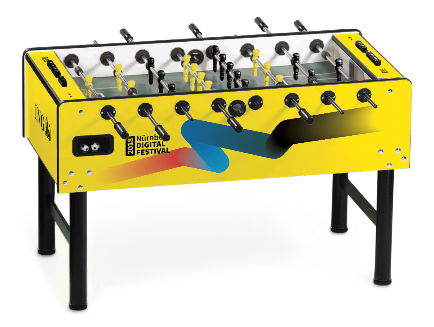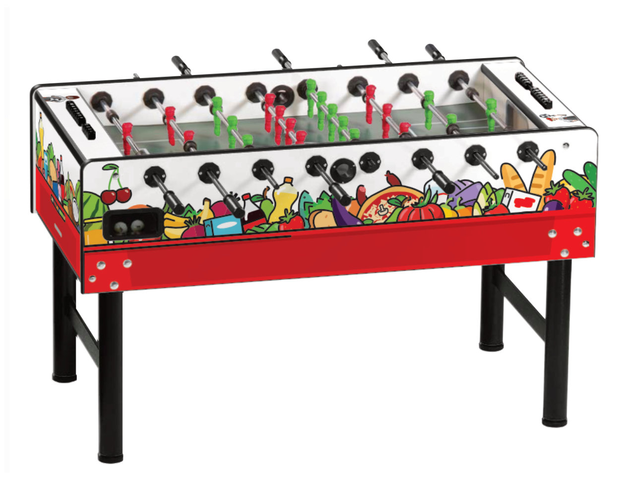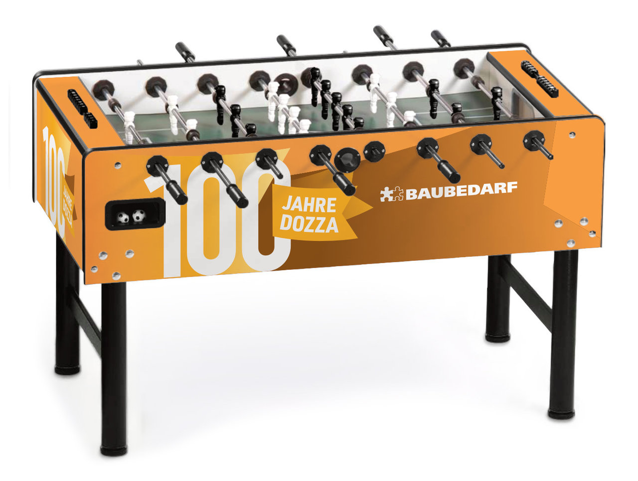 Individualisieren Sie Ihren Kickertisch! Mit dem hochwertigen Branding auf Ihrem Vector Tischkicker. Gestalten Sie die Seiten-, Längs- und Oberfläche Ihres Kickers frei in 4c und schaffen Sie sich somit ein einzigartiges Möbelstück.