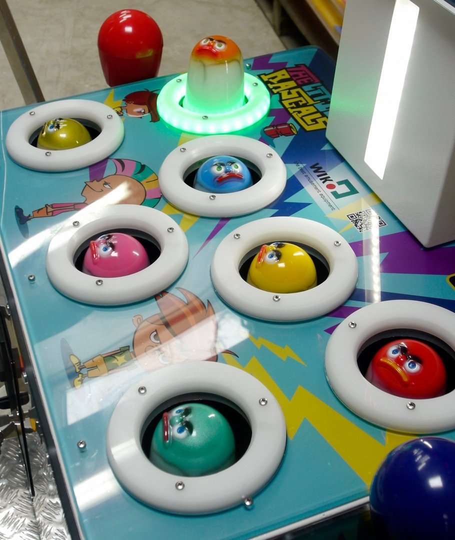 Beim Spielautomaten Ghost von WIK handelt es sich um einen der Spielhallenklassiker, der auch draußen genutzt werden kann. Das Spielprinzip von Schlag den Maulwurf (Beat the mole) ist es, einen Maulwurf möglichst schnell mit einem Hammer auf den Kopf zu treffen. Dieses Reaktions- und Geschicklichkeitsspiel findet seit vielen Jahren großen Andrang in Spielhallen. Die LED-Anzeigen geben sowohl Auskunft über den Punktestand als auch über die verbleibende Zeit. Die robuste Konstruktion aus Metall und laminiertem Polykarbonat hält auch starken Belastungen stand. Ein Münzprüfer ist installiert.