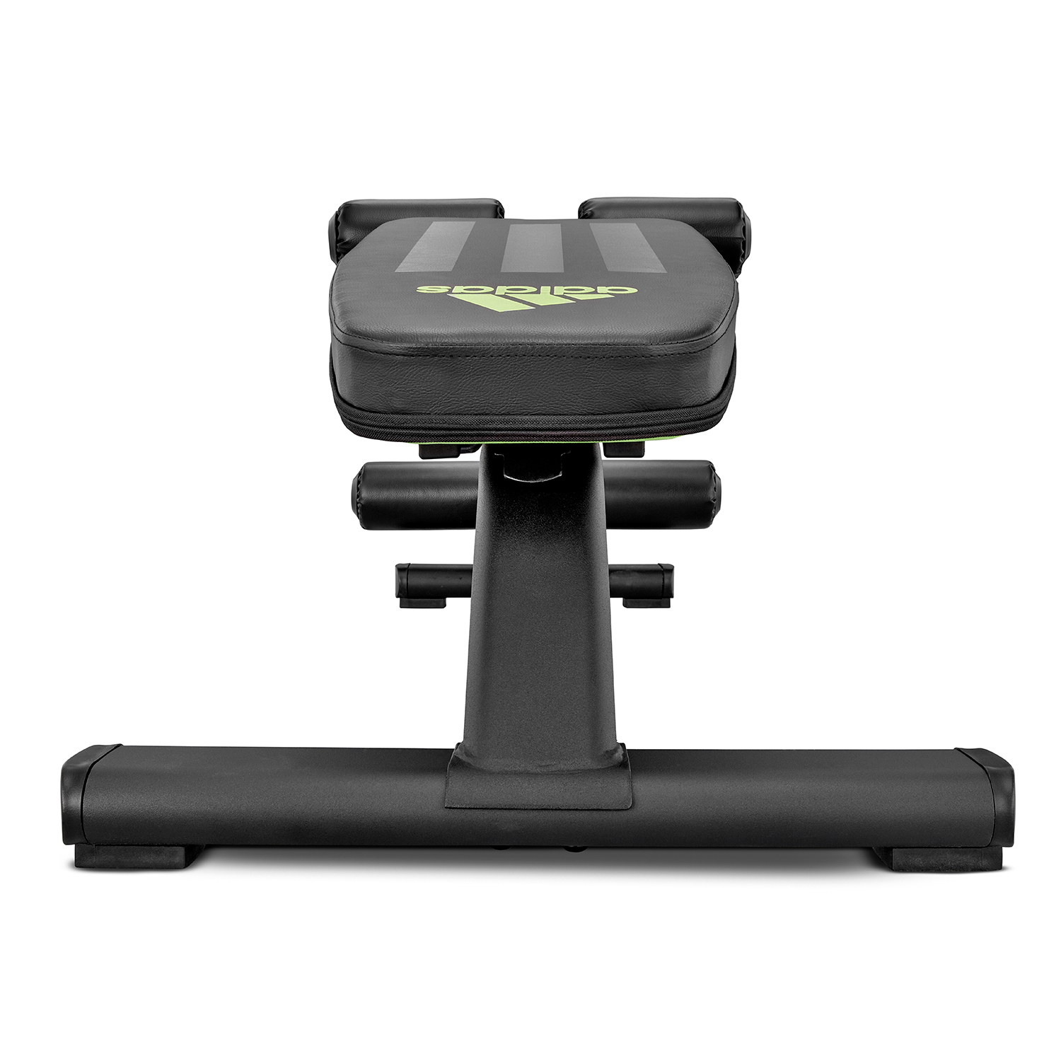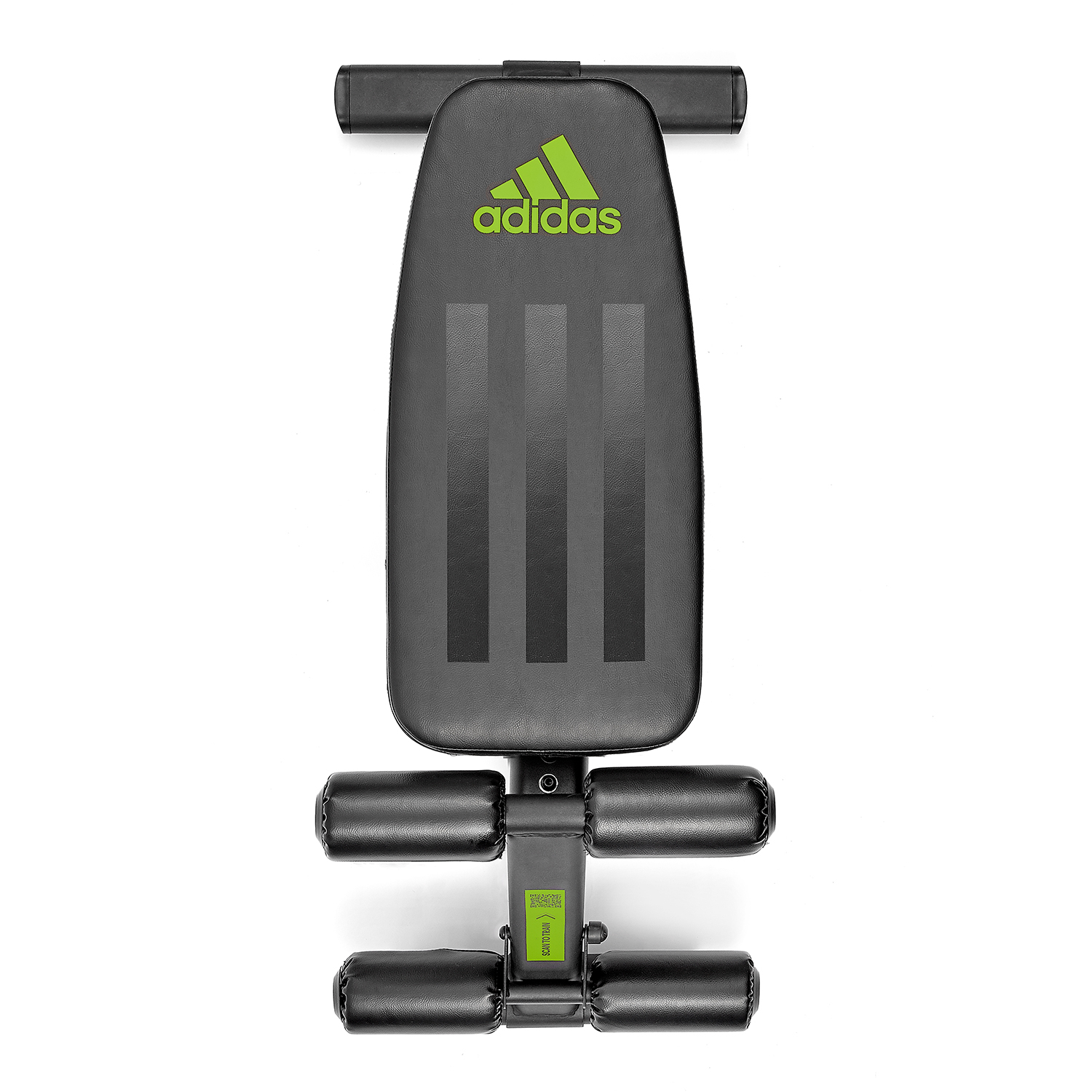 The Adidas Performance ab bench has a strong steel frame and wide base for total stability. The bench features a 2.5-inch thick, tapered foam back cushion for good support and comfort during your workout. The foam-covered knee and ankle supports provide additional comfort. The maximum load capacity of this Adidas fitness bench is 175 pounds. The Scan to Train QR code on the Adidas Performance Ab bench gives you access to training videos to help you with your workouts.